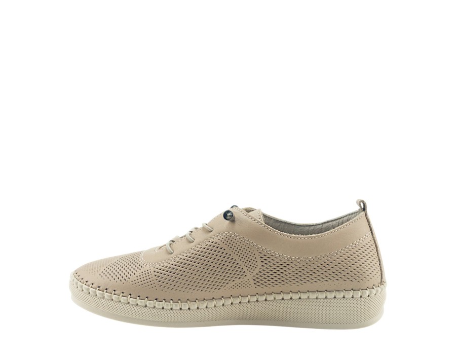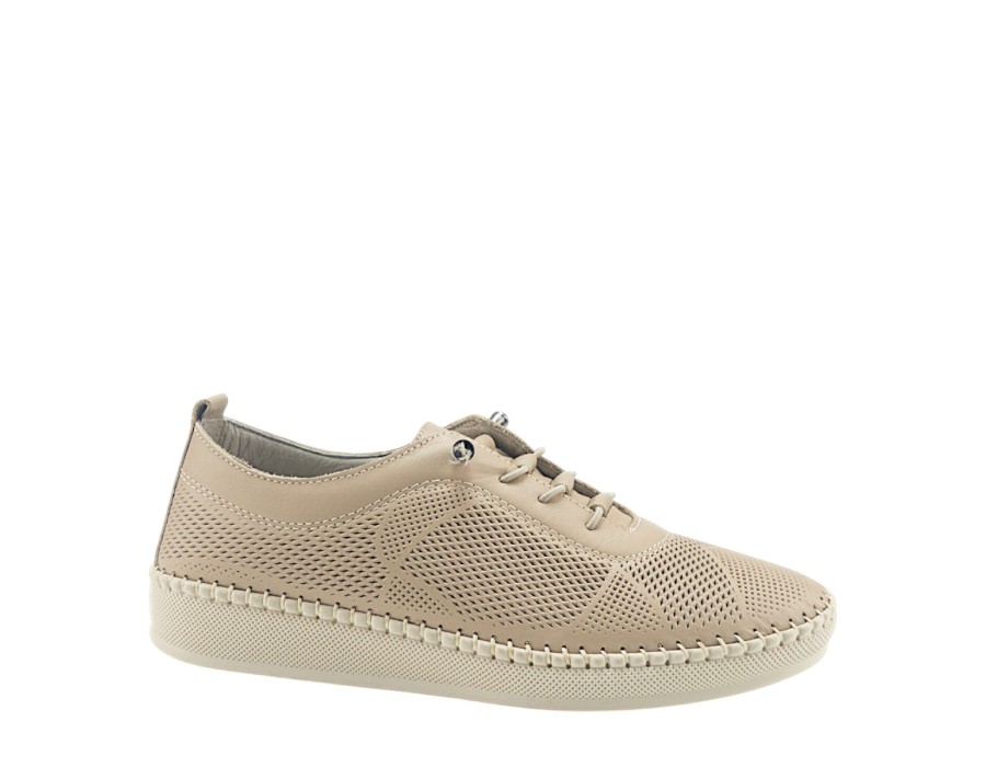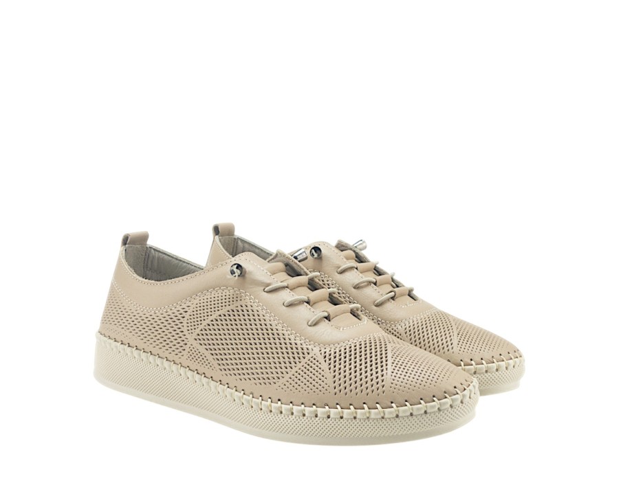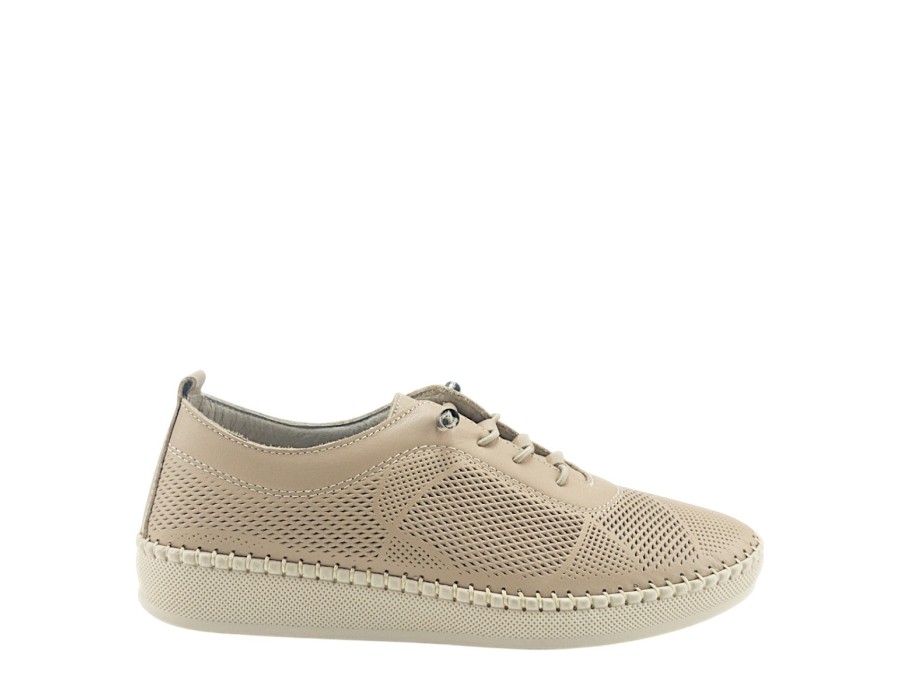 Γυναικεία sneakers AEROSTEP δετά για σταθερή εφαρμογή σε υπέροχο μπεζ χρώμα, από συνθετικό δέρμα, θα σας ενθουσιάσει και θα δώσει στις εμφανίσεις σας ένα κομψό ύφος.