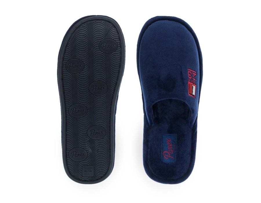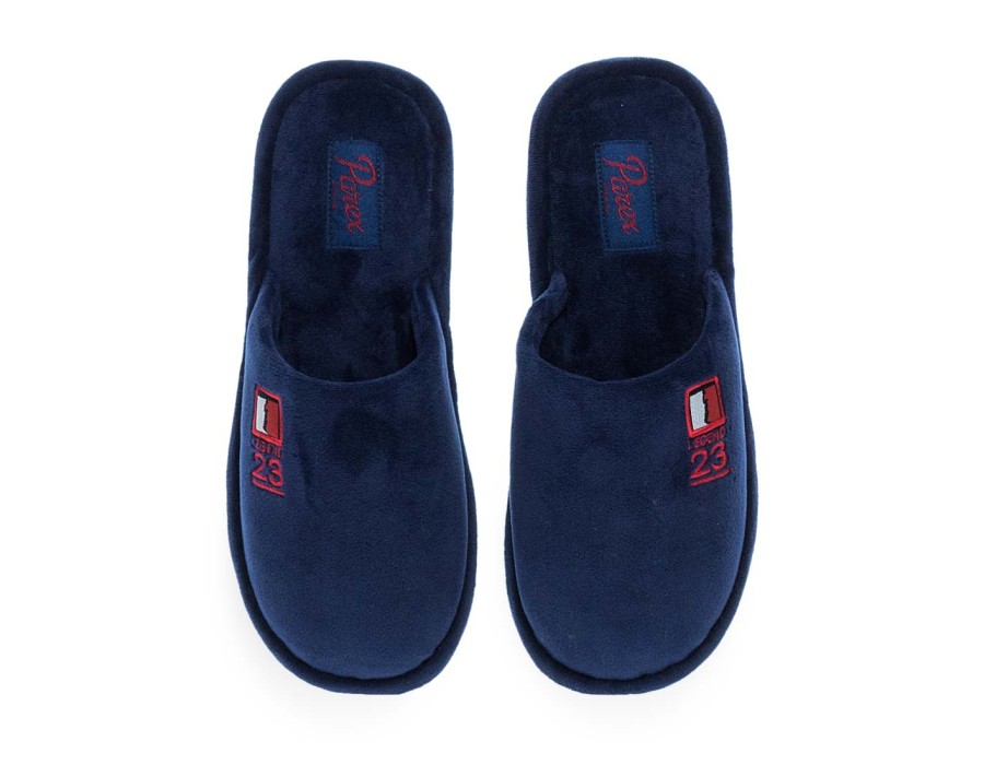 Ανδρικές παντόφλες σπιτιού Parex. Ανδρικές παντόφλες Parex σε μπλε και γκρι χρώμα με διακριτικό patch «Legend 23». Μαλακή υφή και ανατομικός πάτος για άνεση όλη μέρα.