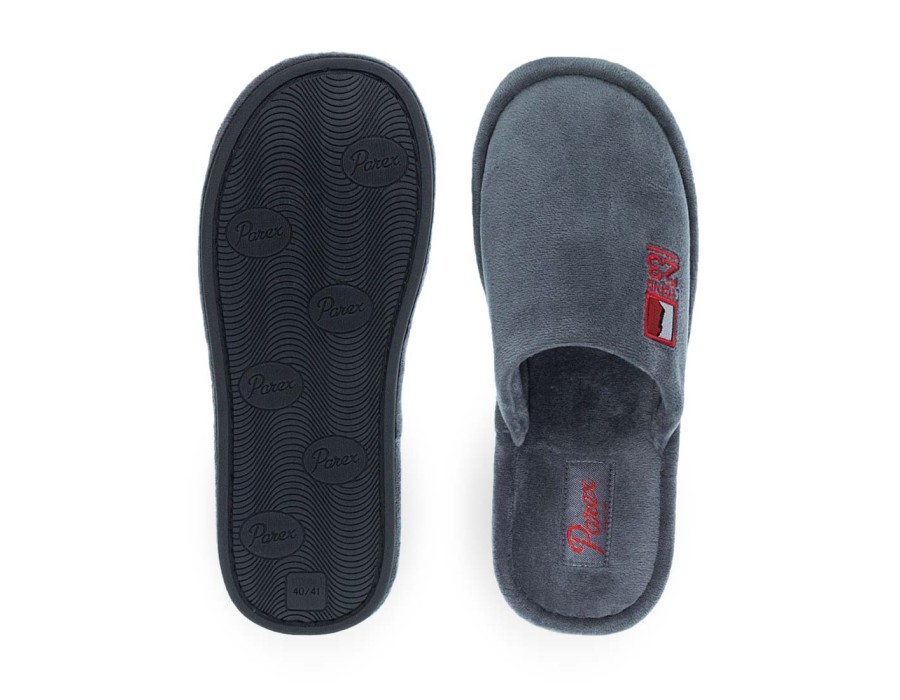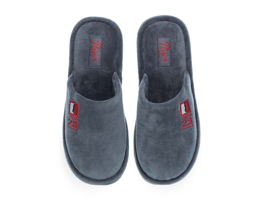 Ανδρικές παντόφλες σπιτιού Parex. Ανδρικές παντόφλες Parex σε μπλε και γκρι χρώμα με διακριτικό patch «Legend 23». Μαλακή υφή και ανατομικός πάτος για άνεση όλη μέρα.