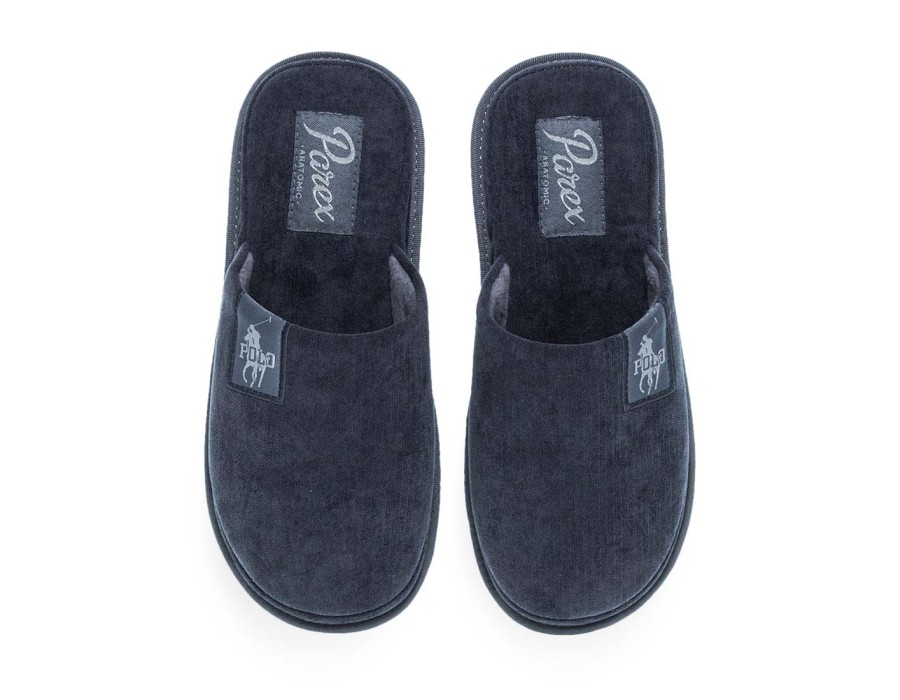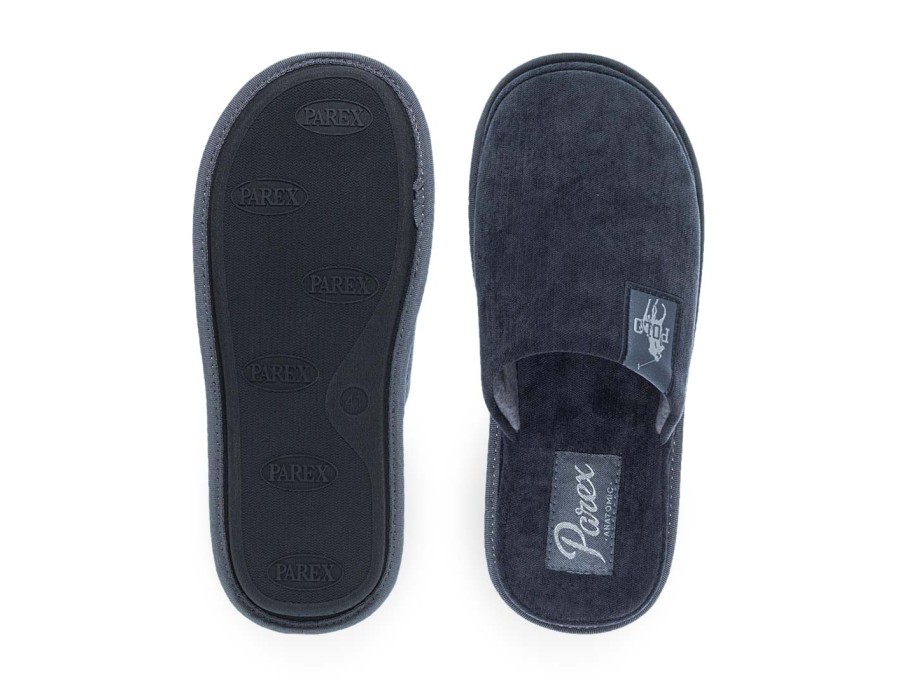 Ανδρικές παντόφλες σπιτιού Parex. Ανδρικές παντόφλες Parex σε γκρι σκούρο και μπλε. Κομψές, ζεστές και ανθεκτικές.