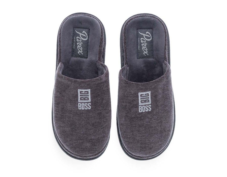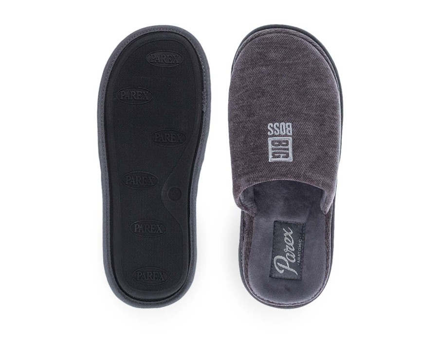 Ανδρικές παντόφλες σπιτιού Parex. Ανδρικές παντόφλες Parex σε γκρι σκούρο και μπλε χρώμα. Κομψές, ζεστές και ανθεκτικές.