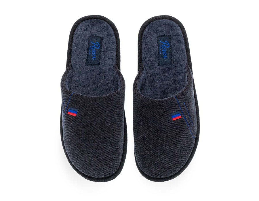 Ανδρικές παντόφλες σπιτιού Parex. Ανδρικές παντόφλες Parex σε γκρι σκούρο και μπλε χρώμα. Κομψές, ζεστές και ανθεκτικές.