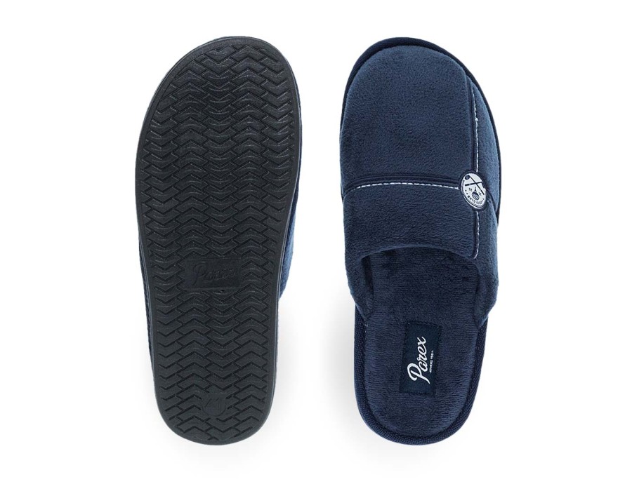 Ανδρικές παντόφλες σπιτιού Parex. Ανδρικές παντόφλες Parex σε γκρι σκούρο και μπλε χρώμα. Κομψές, ζεστές και ανθεκτικές.