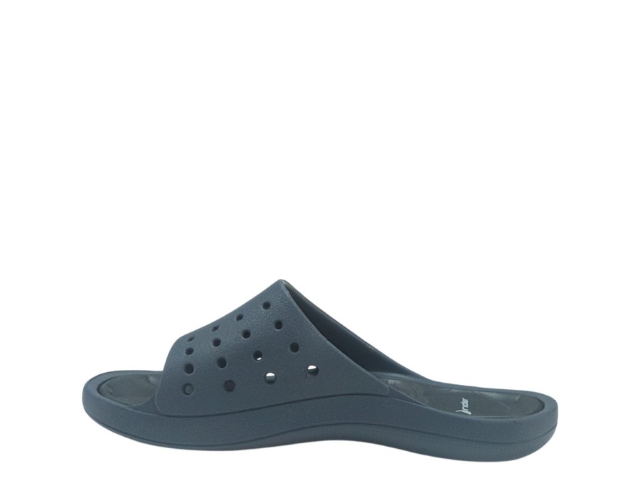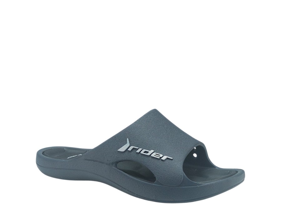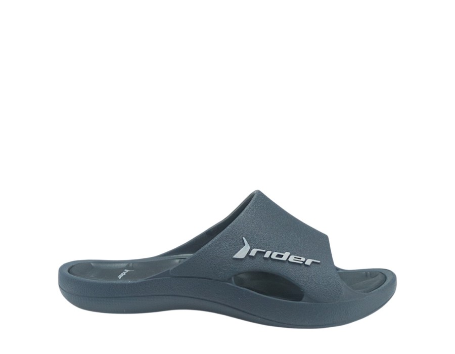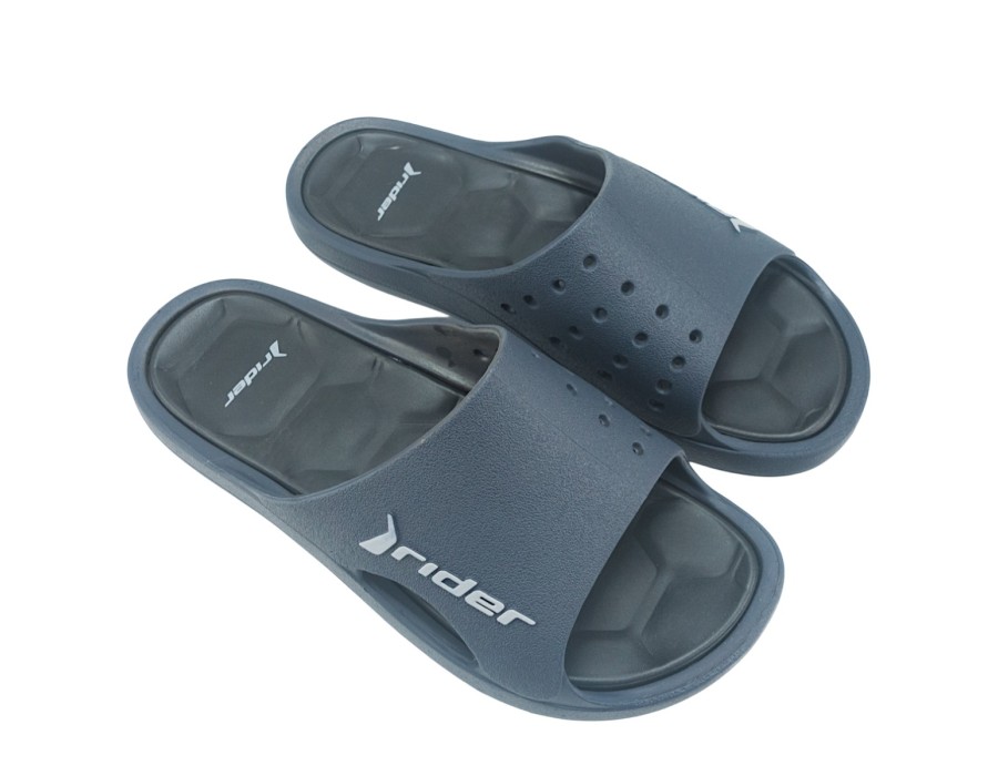 Ανδρικές καλοκαιρινές παντόφλες Rider τύπου slide σε μαύρο χρώμα, ιδανικές για άνετη καθημερινή χρήση. Κατασκευασμένες από ανθεκτικά υλικά υψηλής ποιότητας, προσφέρουν σταθερότητα και άνεση σε κάθε βήμα. Η φαρδιά λωρίδα στο επάνω μέρος εξασφαλίζει εύκολη και καλή εφαρμογή στο πόδι, ενώ ο ανάγλυφος, αντιολισθητικός πάτος προσφέρει σιγουριά και ξεκούραστο περπάτημα καθ’ όλη τη διάρκεια της ημέρας.