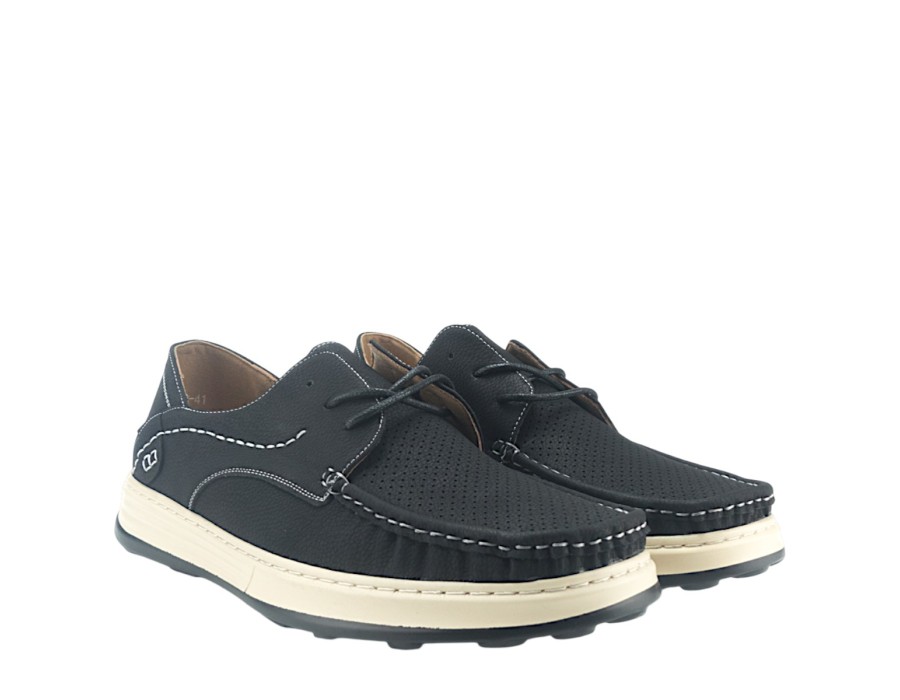 Ανδρικό παπούτσι σε μαύρο χρώμα, κατασκευασμένο από δέρμα και συνθετικό δέρμα, εύκολο στη συντήρηση. Διαθέτει παχιά σόλα για ξεκούραστο πάτημα, ελαφρύ, εύκαμπτο και μαλακό, κατάλληλο για όλες τις καθημερινές ανάγκες σας, all time classic σχέδιο.