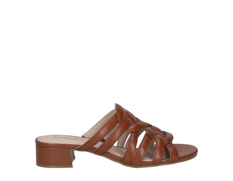 Γυναικεία mules της μάρκας Caprice σε καφέ-ταμπά χρώμα. Κατασκευασμένα από δέρμα, άνετα και ευκολοφόρετα για όλη την ημέρα.
