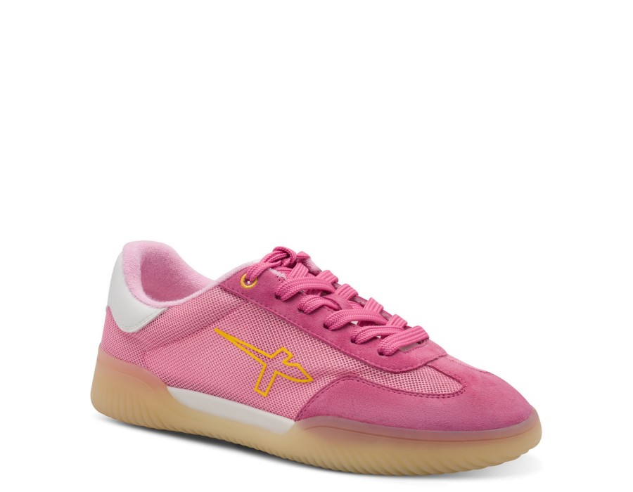Γυναικείο sneaker παπούτσι του οίκου TAMARIS σε ροζ χρώμα, είναι κατασκευασμένο από δέρμα, υψηλής ποιότητας συνθετικό δέρμα και ύφασμα. Διαθέτει σόλα υψηλής ποιότητας ενώ το ύψος του τακουνιού είναι 1,5 εκ.