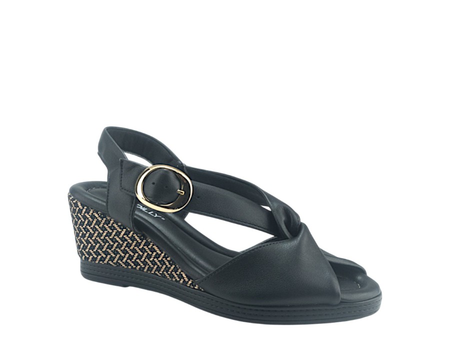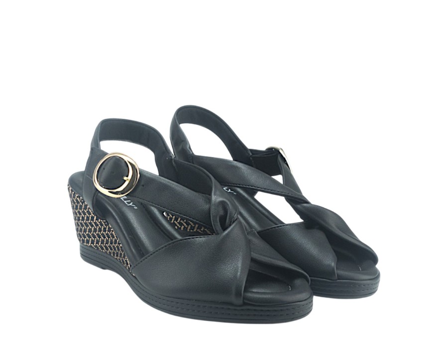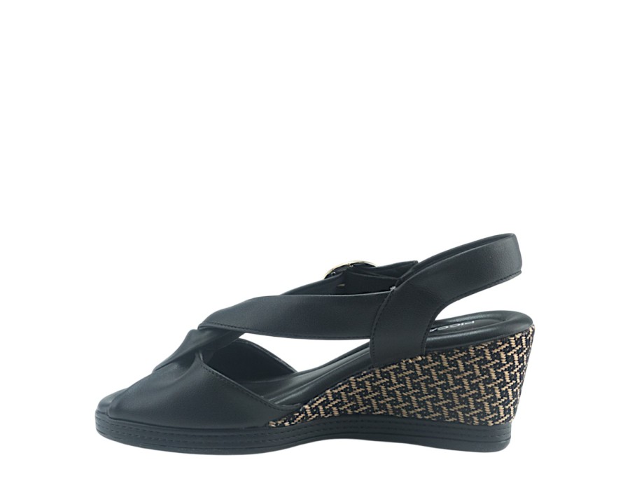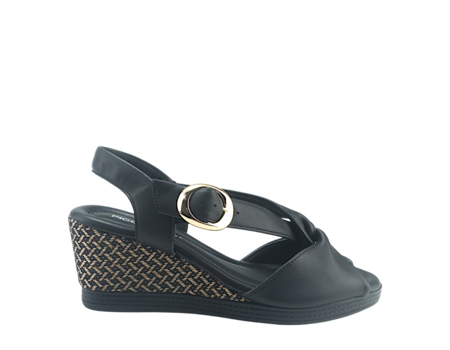 Γυναικείο πέδιλο από συνθετικό δέρμα, σε μαύρο χρώμα, διαθέτει πλατφόρμα ύψους 7 cm καθώς και φιαπα στο μπροστά μέρος που το κάνει πιο άνετο και ευκολοφόρετο όλη την μέρα.