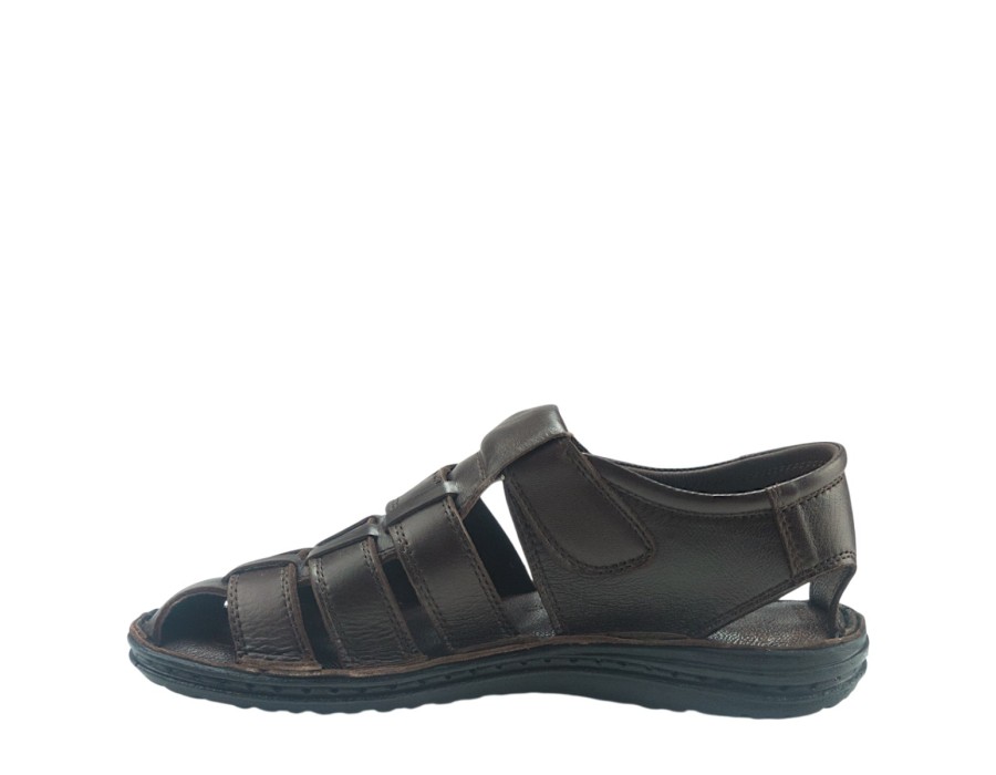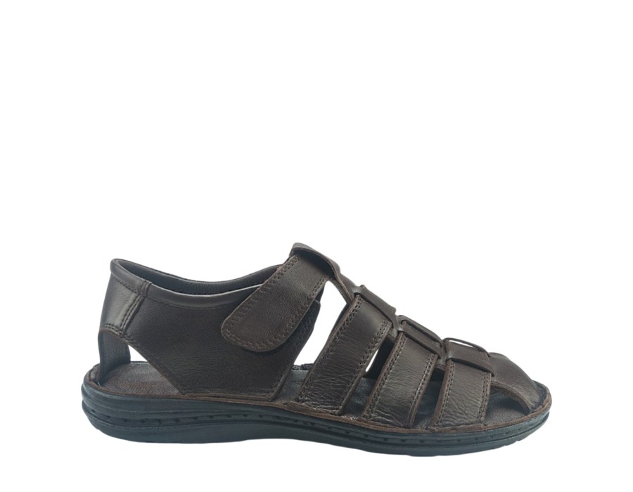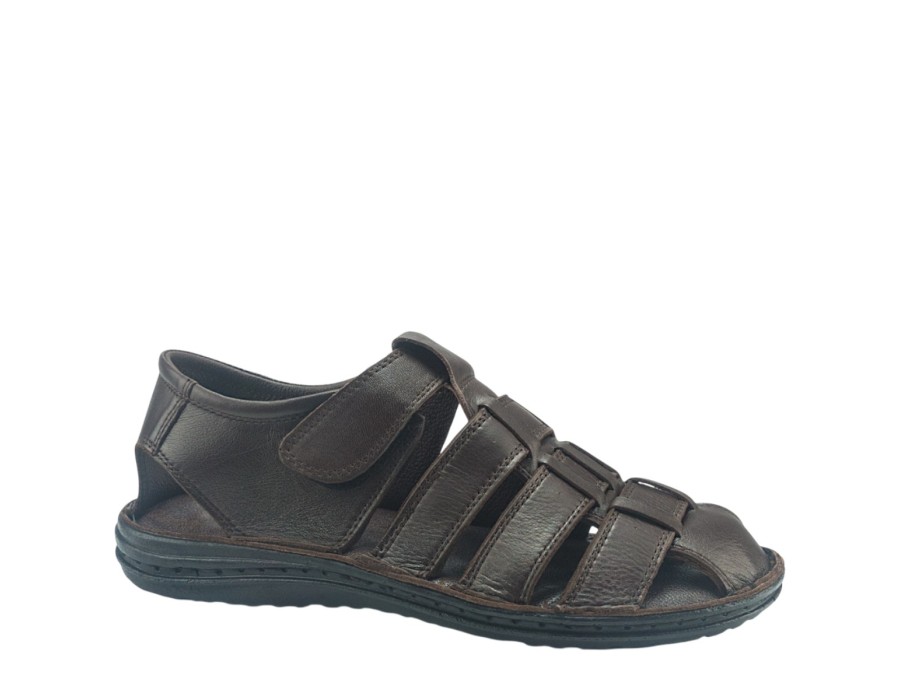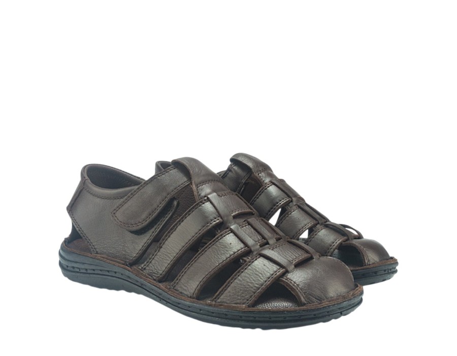 Ανδρικά πέδιλα κατασκευασμένα από δέρμα σε καφέ χρώμα. Διαθέτουν αντιολισθητική σόλα και άνετο κλείσιμο με αυτοκόλλητο "Scratch".