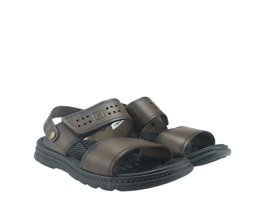 Ανδρικά πέδιλα κατασκευασμένα από δέρμα και συνθετικό δέρμα σε καφέ χρώμα. Διαθέτουν αντιολισθητική σόλα και άνετο κλείσιμο με αυτοκόλλητο "Scratch".