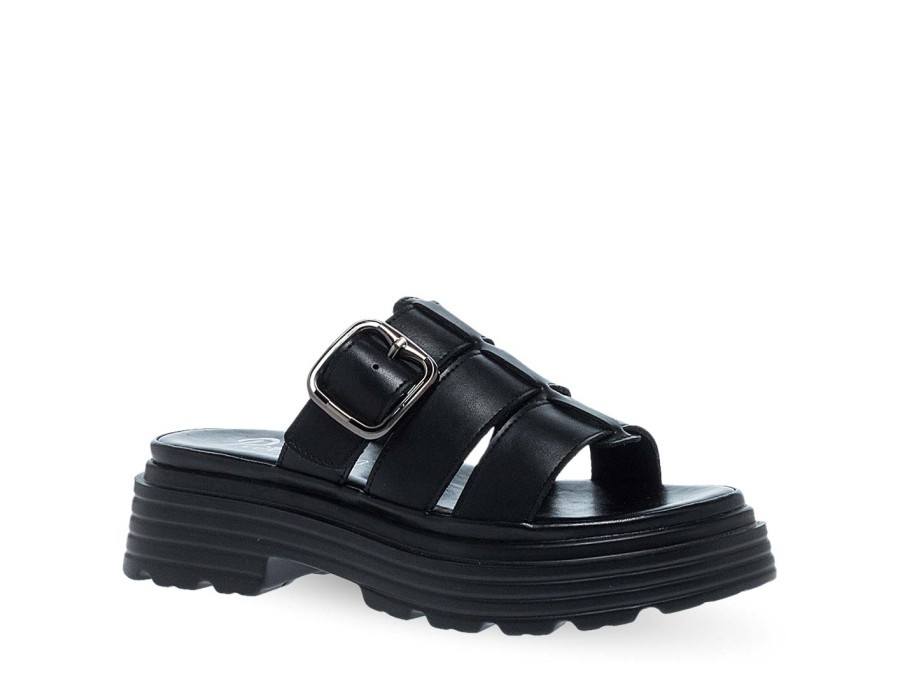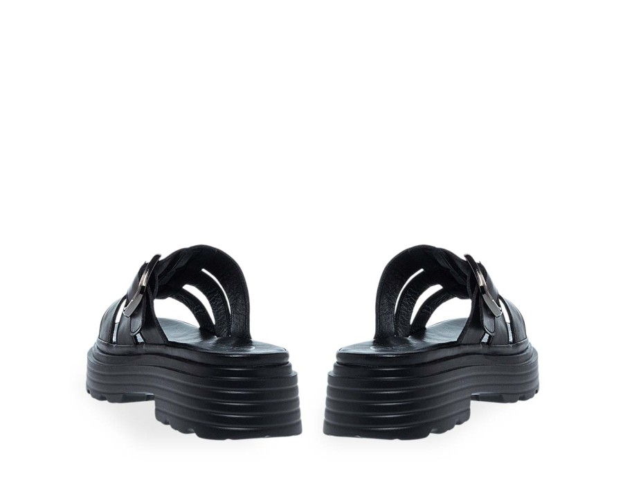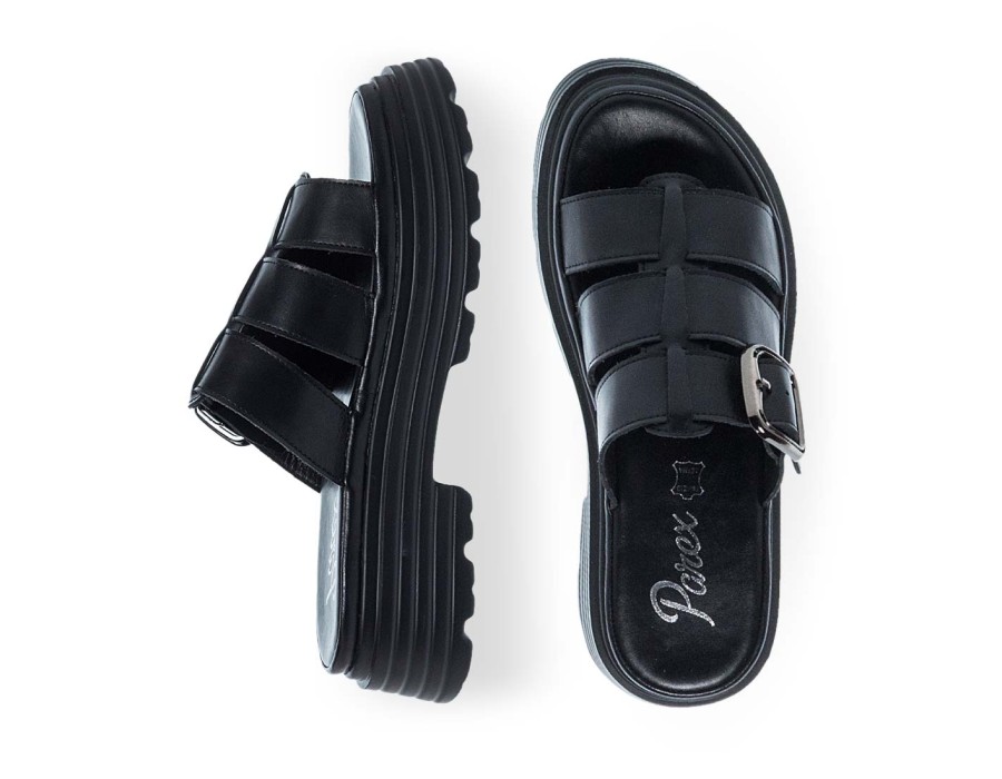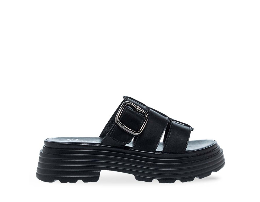 Γυναικεία δερμάτινα flatform Parex. Γυναικεία δερμάτινα flatforms με φαρδιά λουράκια στο επάνω μέρος και μεταλλικές αγκράφες. Ο σχεδιασμός περιλαμβάνει στρογγυλεμένο τελείωμα και ενιαία σόλα αυξημένου ύψους, δημιουργώντας έντονη και σύγχρονη γραμμή. Τεχνολογία "UltraLight" με ελαφρύ σχεδιασμό για άνεση, επιστροφή ενέργειας και ελευθερία κίνησης, προσφέροντας ένα αβίαστο, φυσικό βάδισμα.