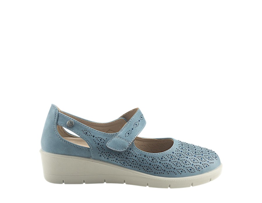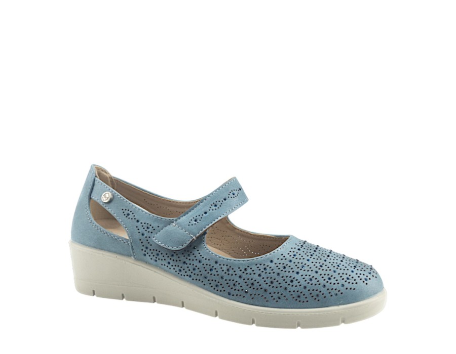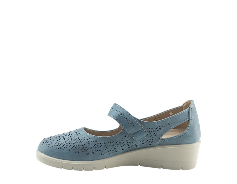 Γυναικείo παπούτσι της εταιρείας MY SOFT κατασκευασμένο από υψηλής ποιότητας συνθετικό δέρμα. Με ελαφριά σόλα ύψους 4 εκατοστών σε γαλάζιο χρώμα.