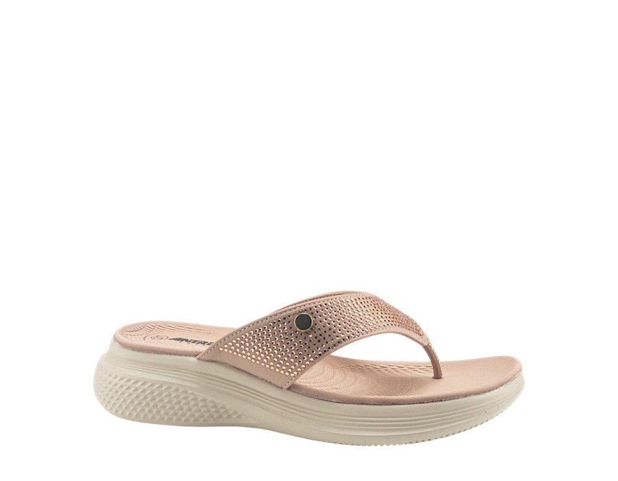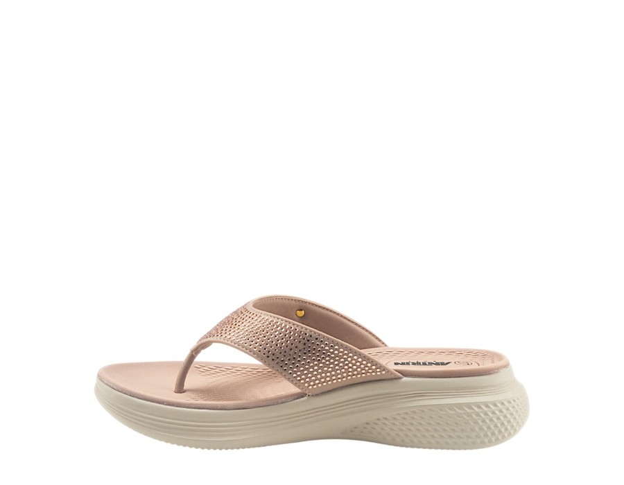 Γυναικείες σαγιονάρες comfort ANTRIN. Έχουν κατασκευαστεί από συνθετικό δέρμα υψηλής ποιότητας. Διαθέτουν V λουράκια διακοσμημένα με στρας. Αυτές οι καλοκαιρινές σαγιονάρες θα σας χαρίσουν σταθερά βήματα και θα προστατεύσουν τα πόδια σας σε κάθε κίνηση. Πολύ μαλακός πάτος και σταθερή σόλα που δεν γλιστράει. Απόλαυσε άνεση και στιλ με αυτές τις υπέροχες comfort σαγιονάρες.