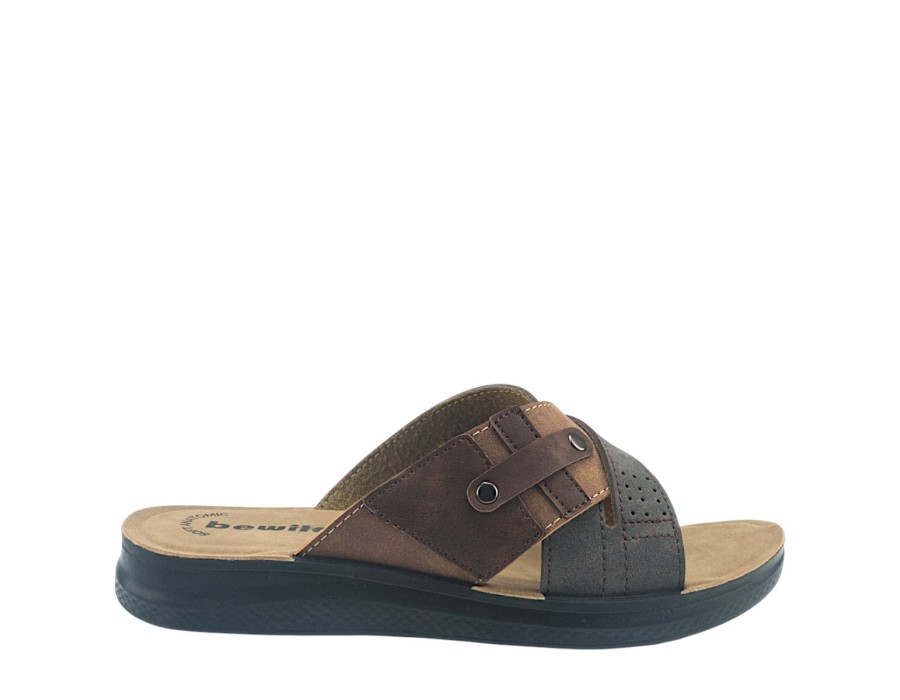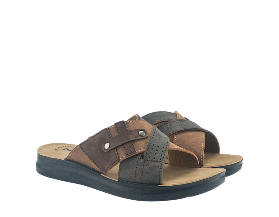 Ανδρικά πέδιλα της εταιρείας ANTRIN κατασκευασμένα από εξαιρετικής ποιότητας συνθετικό δέρμα, με ανατομικό μαλακό πάτο και αντιολισθητική σόλα για να χαρίζει ασφαλές και άνετο περπάτημα.
