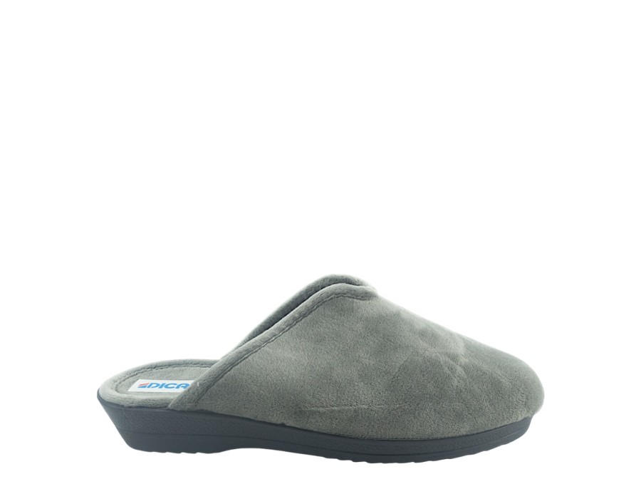 Γυναικείες παντόφλες από την χειμερινή συλλογή της Dicas, σε γκρι χρώμα. Στιλάτες χειμερινές παντόφλες, προσφέρουν άνεση και αποθήκευση της θερμότητας ενώ είναι χαρακτηριστικά μαλακές στο πάτημα. Κατασκευασμένες από πρώτης ποιότητας ύφασμα και αντιολισθητικό πάτο από συνθετικό υλικό.