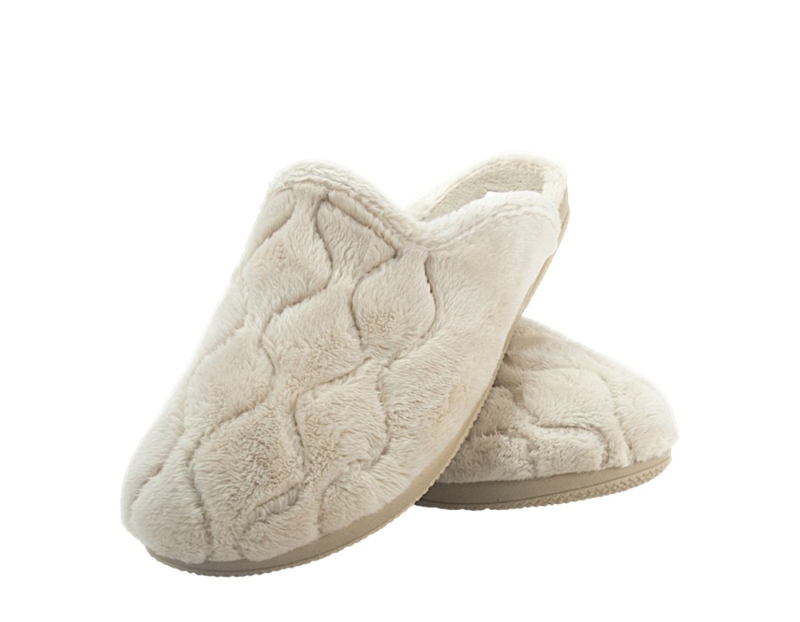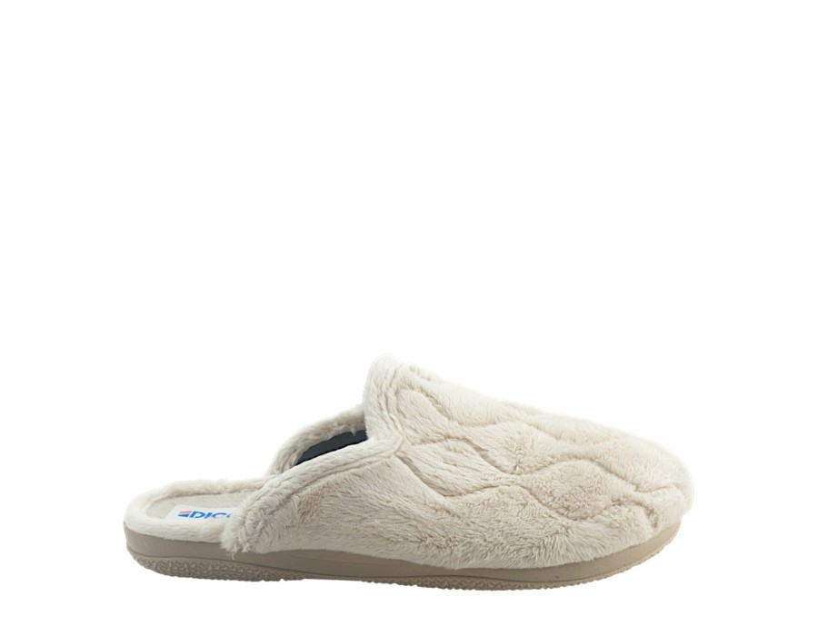 Γυναικείες παντόφλες από την χειμερινή συλλογή της Dicas, σε μπεζ χρώμα. Στιλάτες χειμερινές παντόφλες, προσφέρουν άνεση και αποθήκευση της θερμότητας ενώ είναι χαρακτηριστικά μαλακές στο πάτημα. Κατασκευασμένες από πρώτης ποιότητας ύφασμα και αντιολισθητικό πάτο από συνθετικό υλικό.