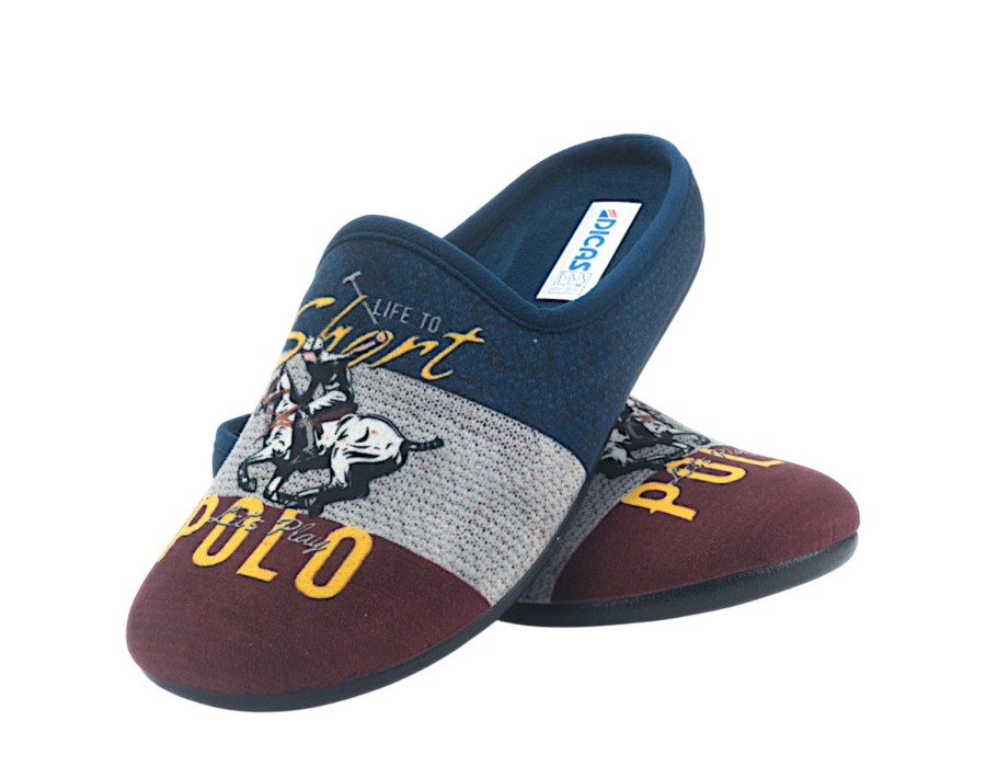 Ανδρικές παντόφλες από την εταιρία DICAS σε μπλε χρώμα από μαλακό ύφασμα και αντιολισθητική σόλα. Ιδανικές για να σας συντροφεύουν στις καθημερινές σας δραστηριότητες στο σπίτι!