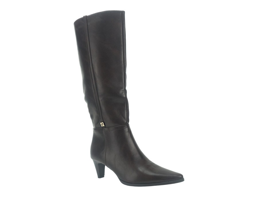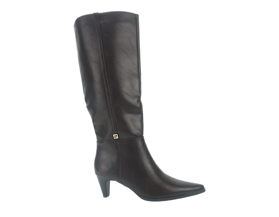 Γυναικεία μπότα σε καφέ χρώμα. Κατασκευασμένο από συνθετικό δέρμα. Το ύψος του τακουνιού είναι 5,5 εκ.