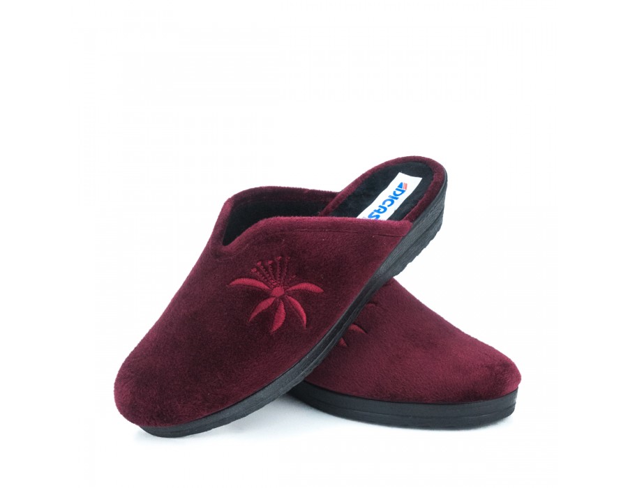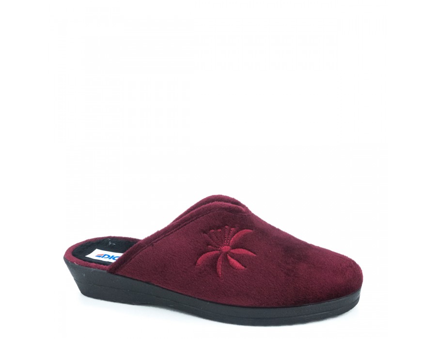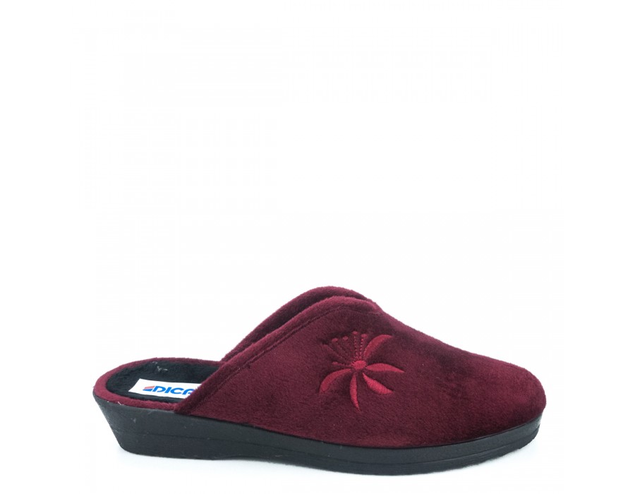 Γυναικείες παντόφλες από την χειμερινή συλλογή της Dicas, σε μπορντώ χρώμα. Στιλάτες χειμερινές παντόφλες, προσφέρουν άνεση και αποθήκευση της θερμότητας ενώ είναι χαρακτηριστικά μαλακές στο πάτημα. Κατασκευασμένες από πρώτης ποιότητας ύφασμα και αντιολισθητικό πάτο από συνθετικό υλικό.
