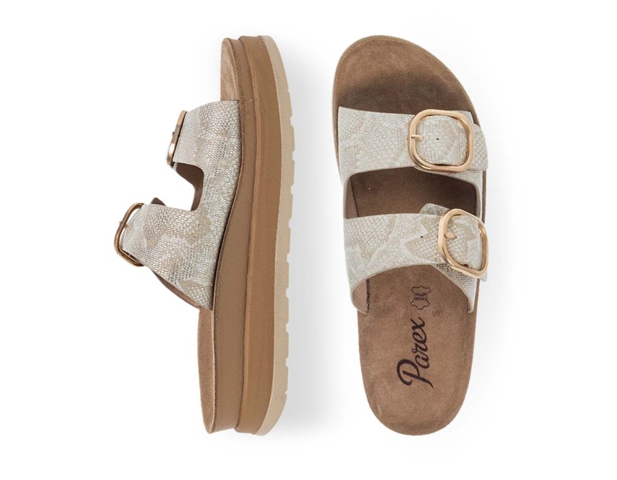 Γυναικεία σανδάλια Parex με εξαιρετικά μαλακό εσωτερικό πάτο. Φορέστε όλη μέρα αυτά τα μοντέρνα και αναπαυτικά σανδάλια από την Parex και χαρίστε στον εαυτό σας ξεκούραστες εμφανίσεις. Διαθέτουν δυο λουράκια που κλείνουν με ρυθμιζόμενη αγκράφα. Τέλειος συνδιασμός άνεσης και στυλ αυτά τα γυναικεία σανδάλια με την υπογραφή της Parex.
