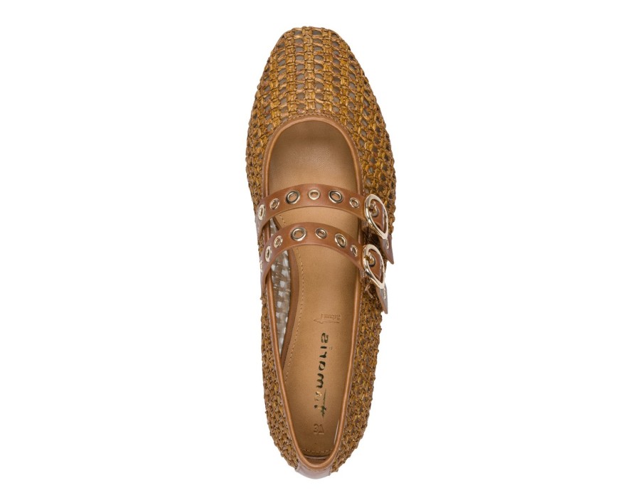 Μπαλαρίνα της μάρκας Tamaris σε καφέ χρώμα με μπαρέτα. Κατασκευασμένη από έναν συνδυασμό συνθετικού δέρματος και υφάσματος, έχει ύψος τακουνιού 1 εκ. ενώ είναι εξοπλισμένη με την τεχνολογία TOUCH-IT/Anti-Slide με μαλακό πάτο για πιο ξεκούραστο περπάτημα. Άνετη και ευκολοφόρετη για όλη την ημέρα.