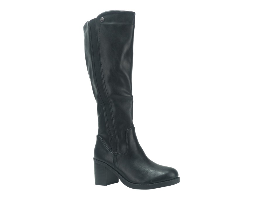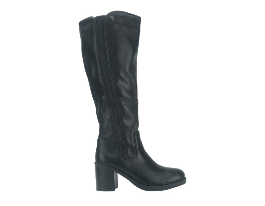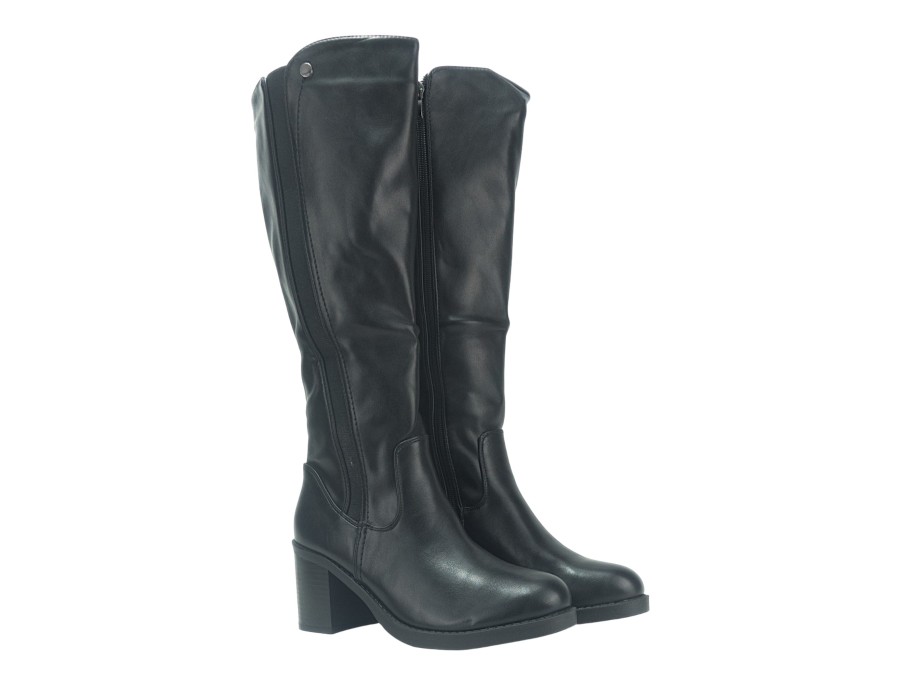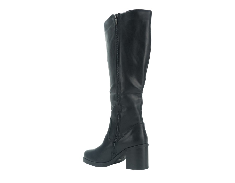 Γυναικεία μπότα σε μαύρο χρώμα. Κατασκευασμένη από συνθετικό δέρμα υψηλής ποιότητας. Το ύψος του τακουνιού είναι 7.5 εκ.