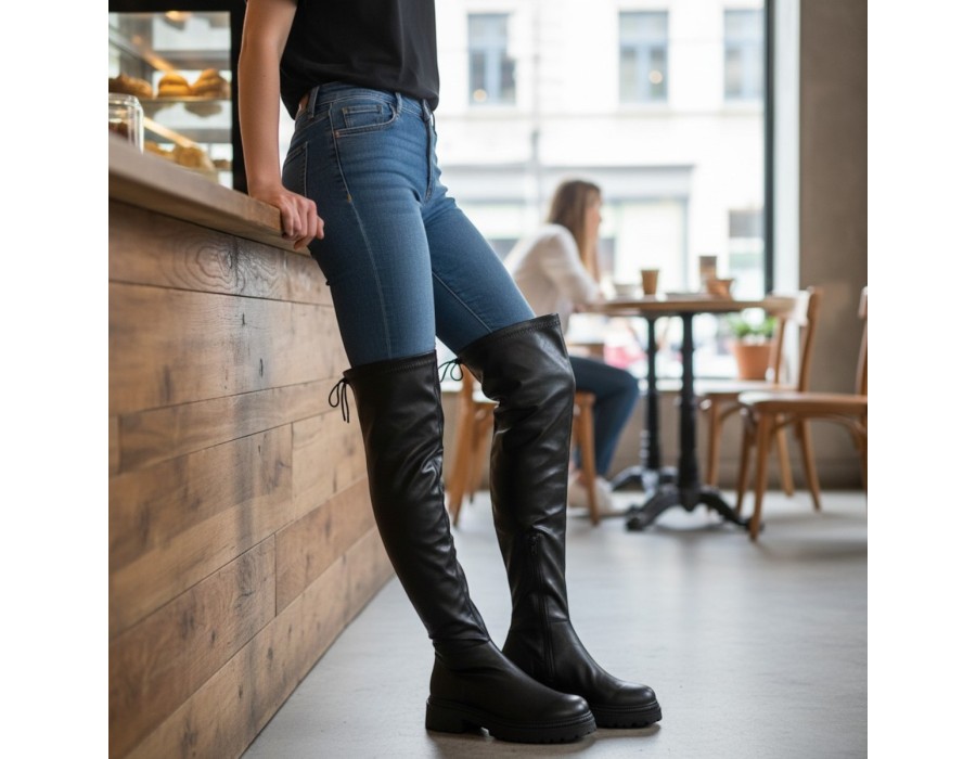 Μπότα Over The Knee με τακούνι 5 cm,αντιολισθητική σόλα και φερμουάρ στην μέσα πλευρά.