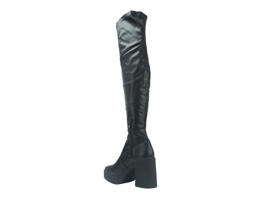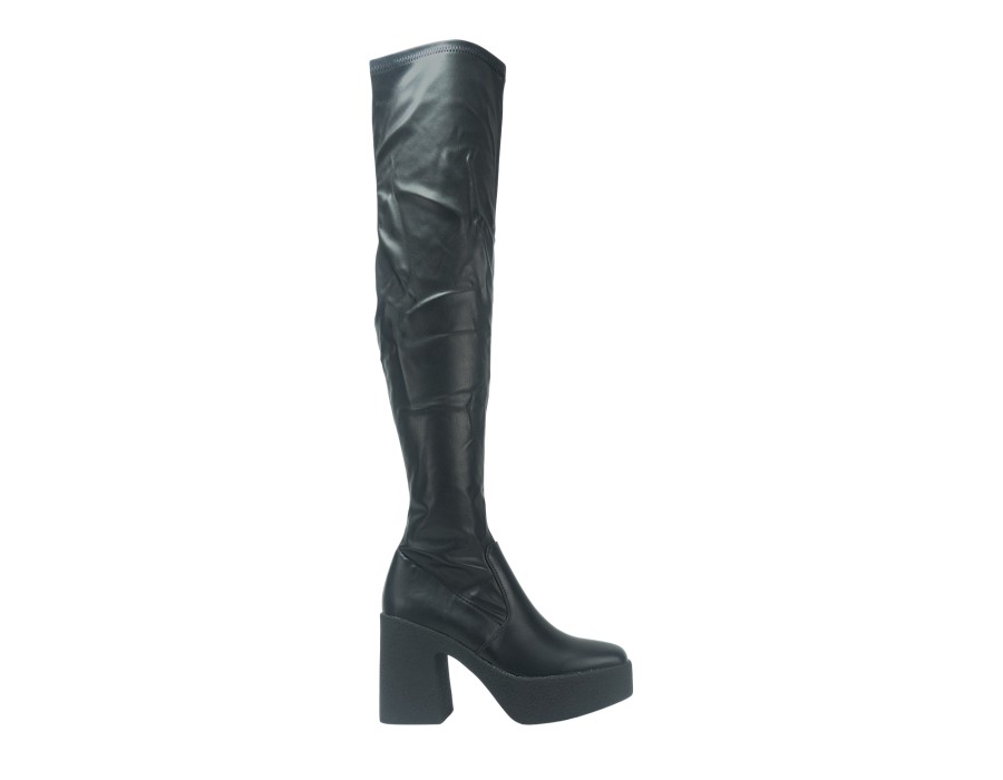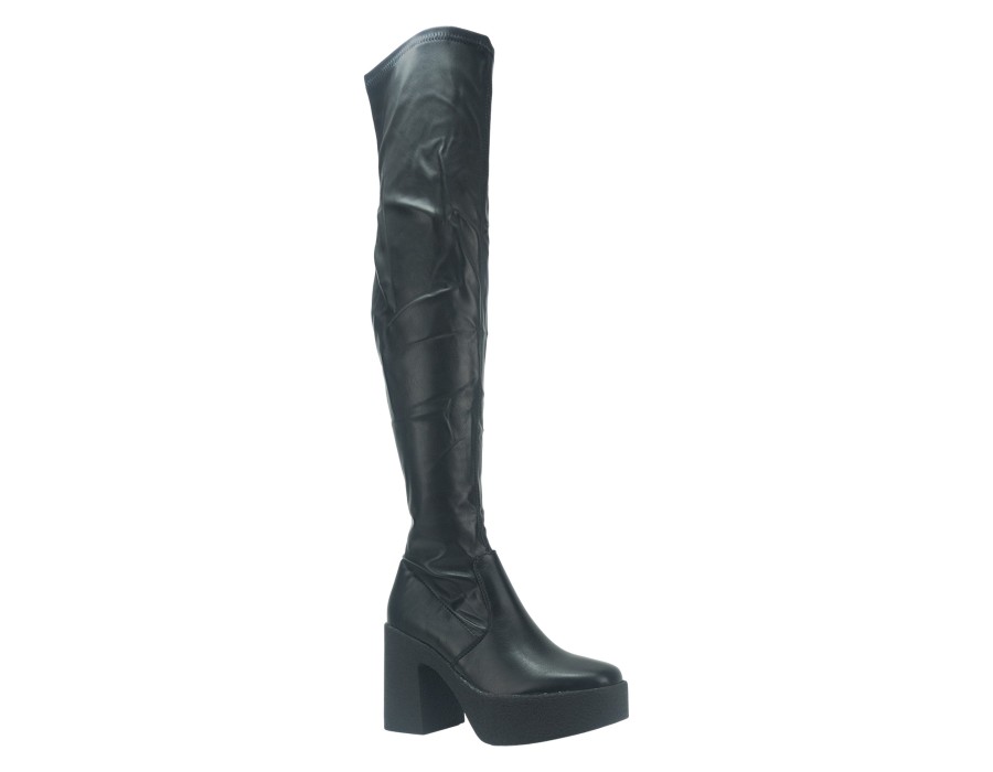 Γυναικεία μπότα over the knee σε μαύρο χρώμα. Κατασκευασμένη από συνθετικό δέρμα υψηλής ποιότητας. Το ύψος του τακουνιού είναι 10 εκ.
