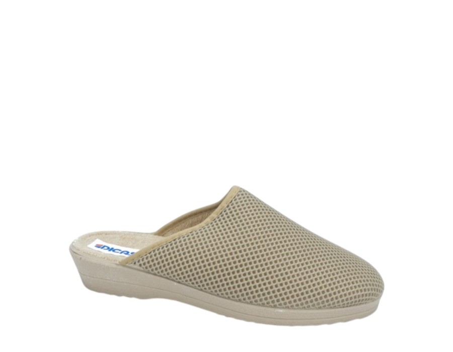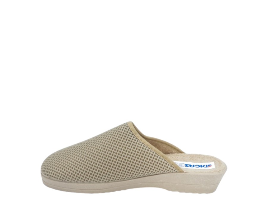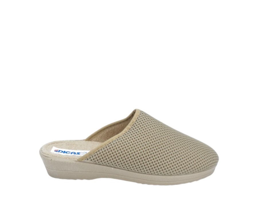 Γυναικείες εξώφτερνες παντόφλες από την ανοιξιάτικη συλλογή της Dicas, σε μπεζ χρώμα. Στιλάτες ανοιξιάτικες παντόφλες, προσφέρουν άνεση και δροσερή αίσθηση ενώ είναι χαρακτηριστικά μαλακές στο πάτημα. Κατασκευασμένες από πρώτης ποιότητας ύφασμα και αντιολισθητικό πάτο από συνθετικό υλικό.
