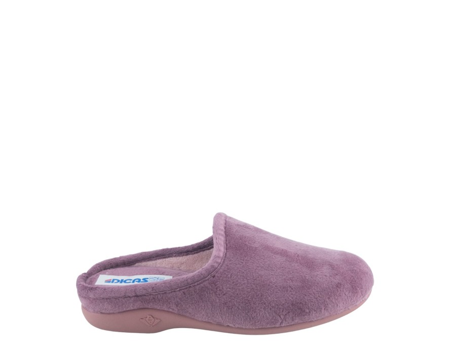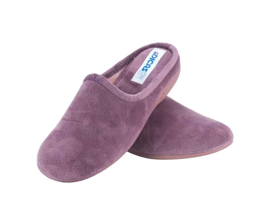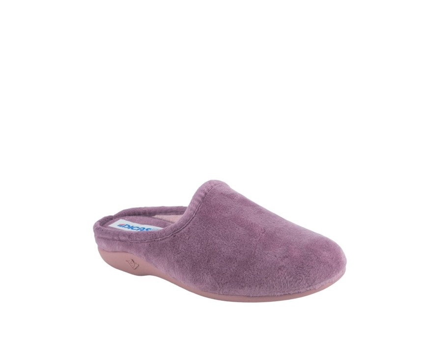 Γυναικείες παντόφλες από την χειμερινή συλλογή της Dicas, σε μωβ χρώμα. Στιλάτες χειμερινές παντόφλες, προσφέρουν άνεση και αποθήκευση της θερμότητας ενώ είναι χαρακτηριστικά μαλακές στο πάτημα. Κατασκευασμένες από πρώτης ποιότητας ύφασμα και αντιολισθητικό πάτο από συνθετικό υλικό.