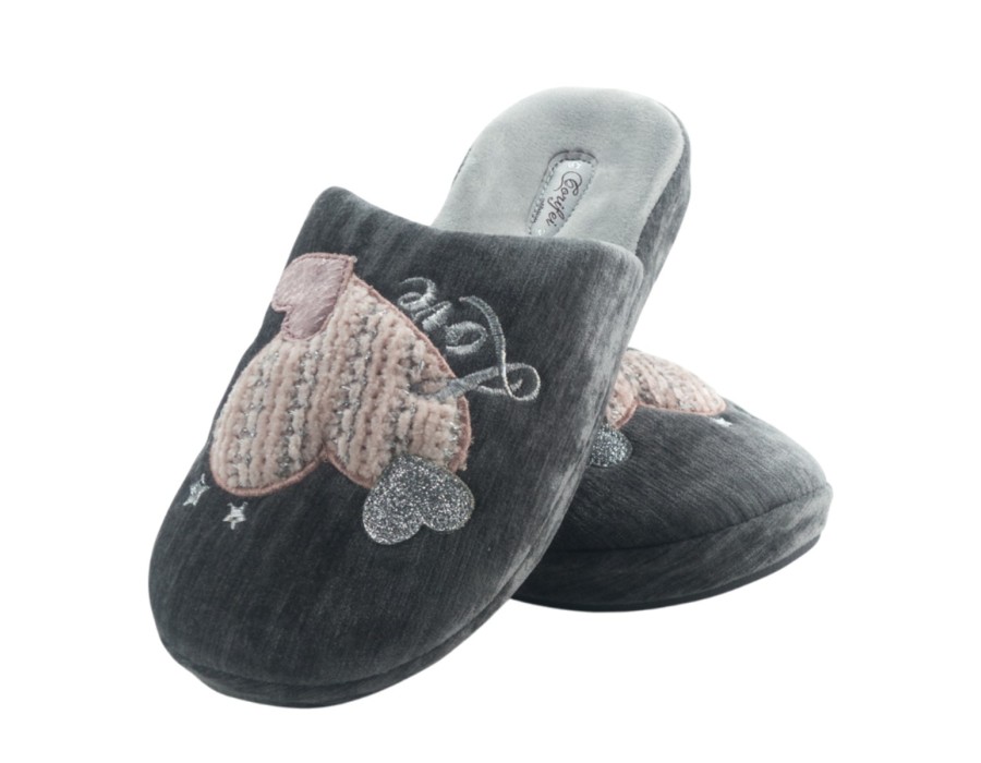 Γυναικείες παντόφλες της εταιρίας Corifei σε γκρι απόχρωση. Αυτές οι χειμερινές παντόφλες συνδυάζουν άνεση και στυλ, προσφέροντας ζεστασιά και στήριξη για τα πόδια σας κατά τη διάρκεια των κρύων μηνών. Ιδανικές για χρήση στο σπίτι, θα σας κρατήσουν ζεστές και ευχάριστες σε κάθε σας βήμα.