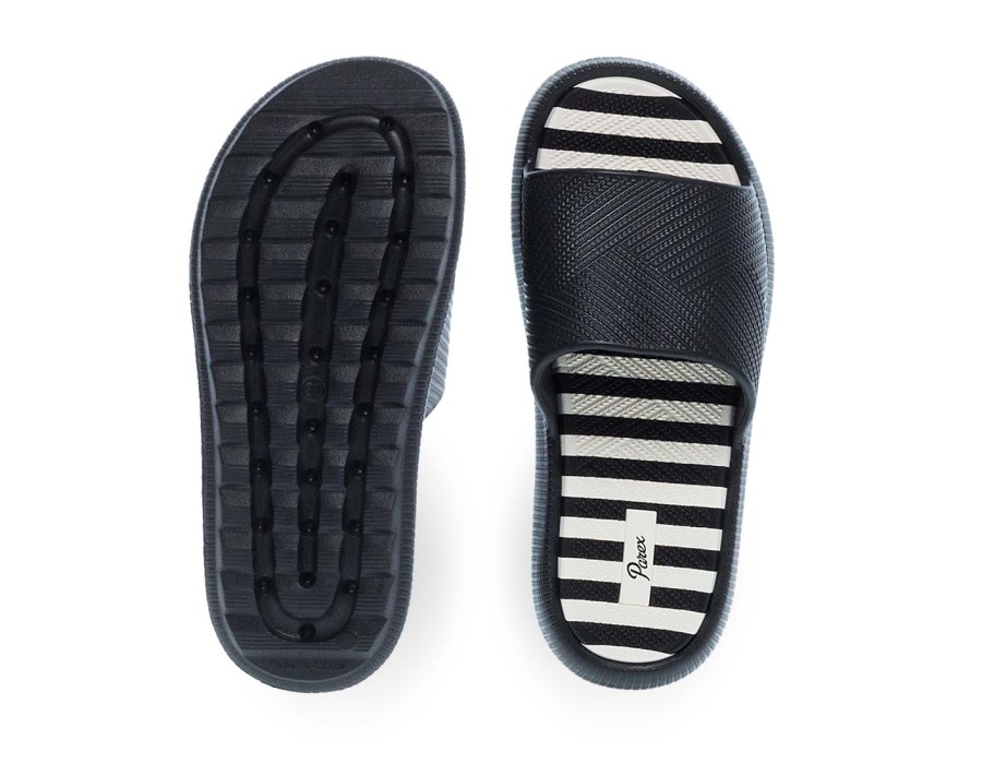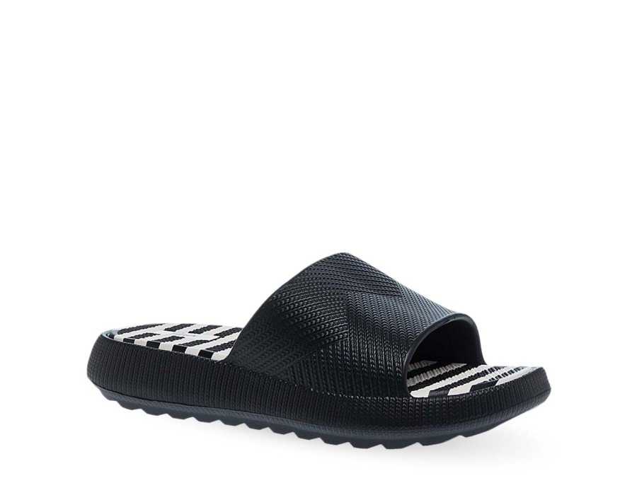 Slides με τυπωμένο πάτο και φαρδιά φάσα σε αναγλυφο σχέδιο που κρατάνε σταθερό το πόδι. Διαθέτουν ανθεκτική, αντιολισθητική σόλα.