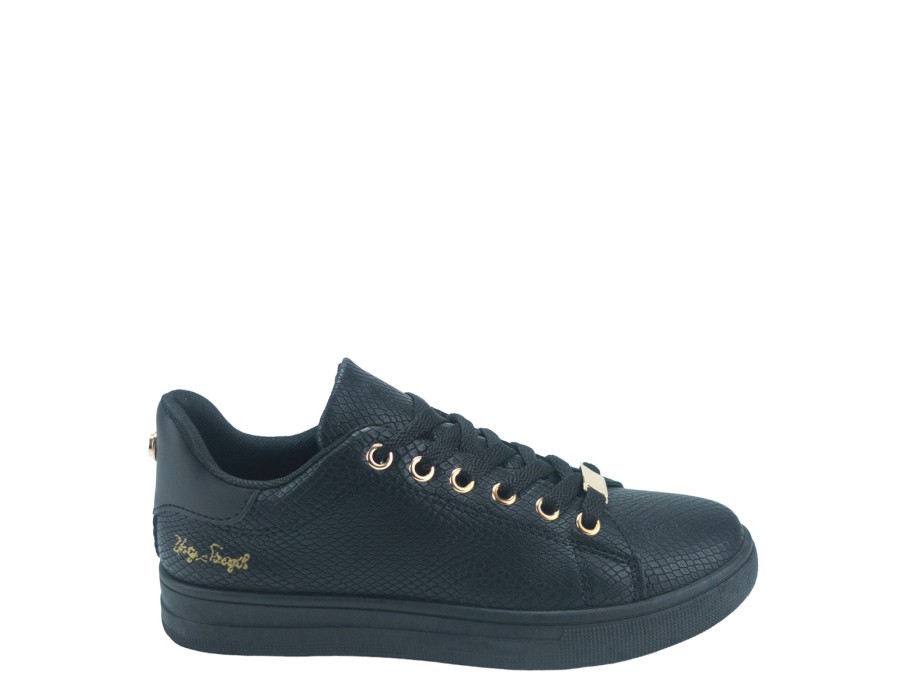 Γυναικεία sneakers NIKOL δετά για σταθερή εφαρμογή σε υπέροχο μαύρο χρώμα, από συνθετικό δέρμα, θα σας ενθουσιάσει και θα δώσει στις εμφανίσεις σας ένα κομψό ύφος.