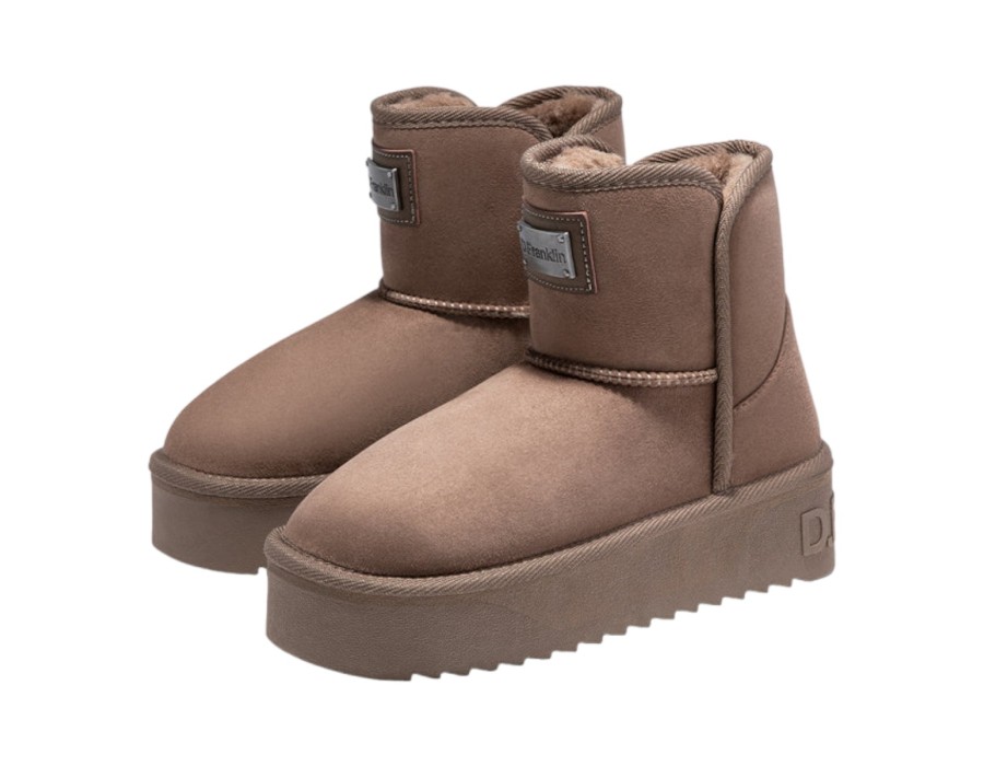 Μποτάκι D.Franklin, τύπου Ugg από eco δέρμα και γούνα. Μεταλλικό τετράγωνο διακοσμητικό με το λογότυπο της εταιρείας, στο κέντρο. Εσωτερική γούνα. Ελαφριά, αντιολισθητική σόλα και γραμμένο το λογότυπο της εταιρείας στο πίσω μέρος της σόλας. Ιδανικό για άνετο και μαλακό πάτημα.