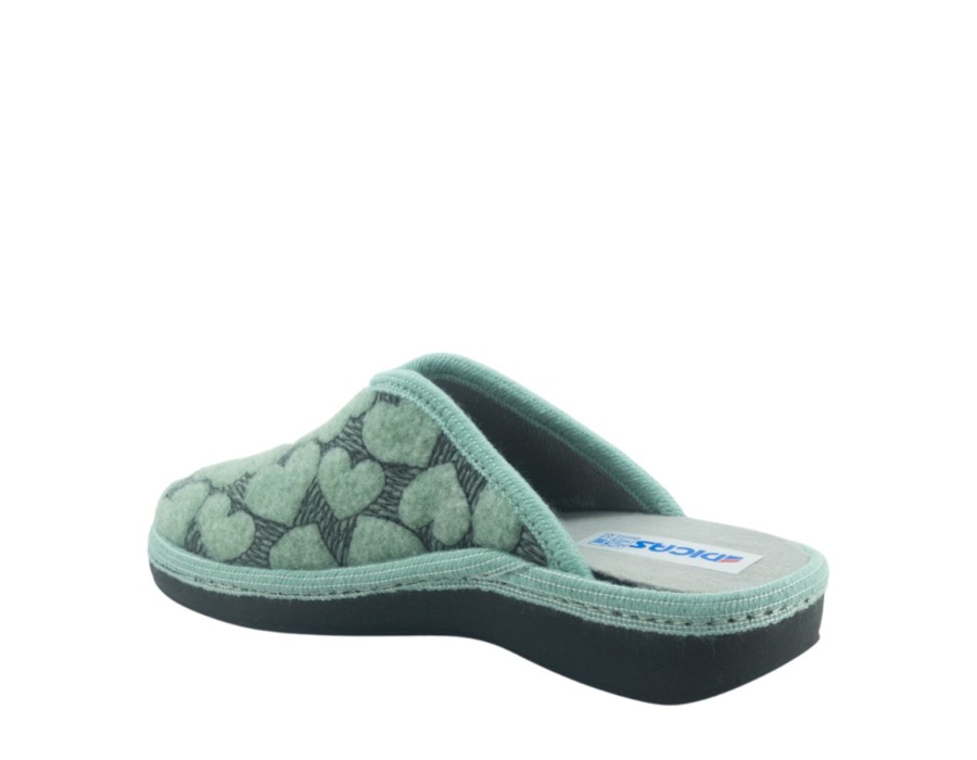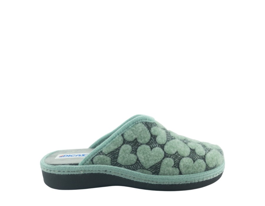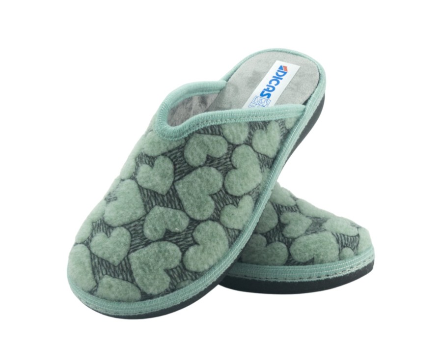 Γυναικείες άνετες και ζεστές παντόφλες σε πράσινο χρώμα από την εταιρεία Dicas. Διαθέτουν εξαιρετικά μαλακό ύφασμα και αντιολισθητική σόλα. Ιδανικές για να σας χαρίσουν άνεση και ξεκούραση στο σπίτι.