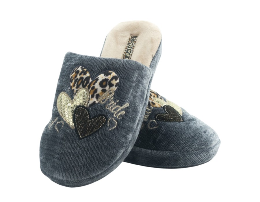 Γυναικείες παντόφλες της εταιρίας Corifei σε γκρι απόχρωση. Αυτές οι χειμερινές παντόφλες συνδυάζουν άνεση και στυλ, προσφέροντας ζεστασιά και στήριξη για τα πόδια σας κατά τη διάρκεια των κρύων μηνών. Ιδανικές για χρήση στο σπίτι, θα σας κρατήσουν ζεστές και ευχάριστες σε κάθε σας βήμα.