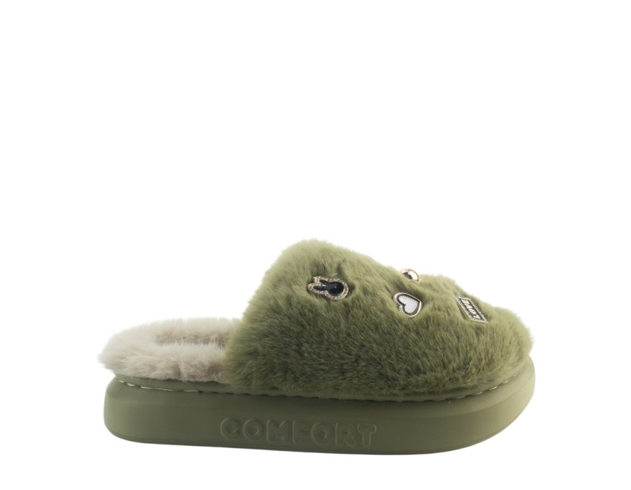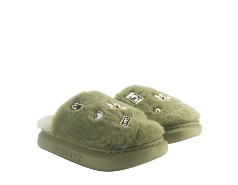 Παντόφλες ADAM'S σε χακί χρώμα. Η άνεση που προσφέρουν οι παντόφλες της συγκεκριμένης εταιρείας με το απαλό ζεστό ύφασμα είναι μοναδική.