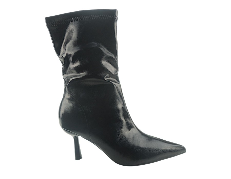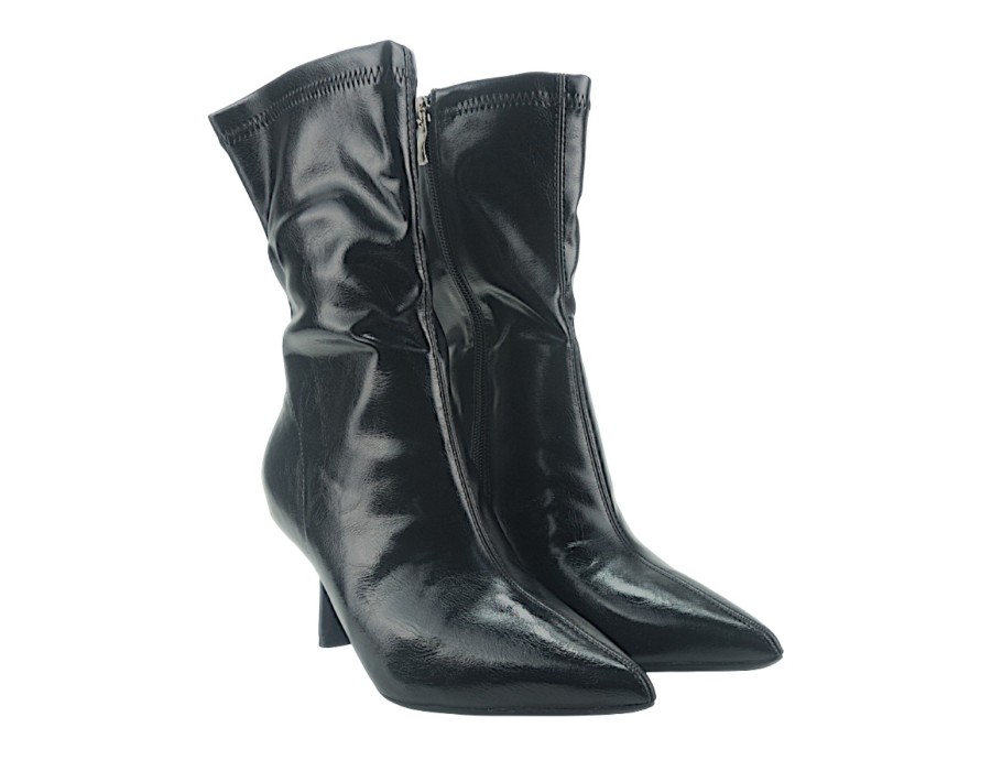 Γυναικείο μποτάκι σε μαύρο χρώμα. Κατασκευασμένο από συνθετικό δέρμα υψηλής ποιότητας. Το ύψος του τακουνιού είναι 7,5 εκ.