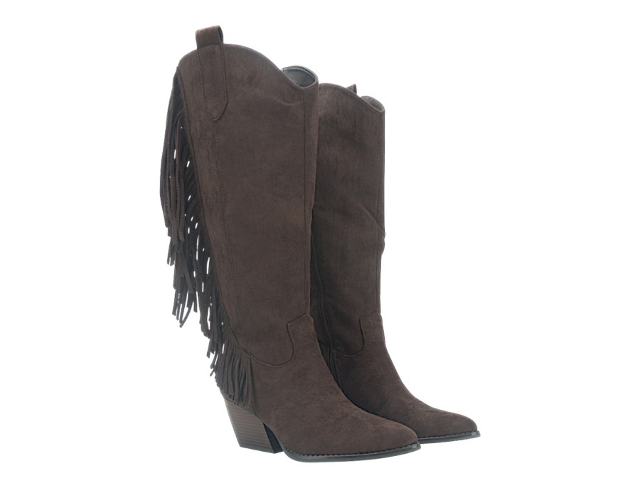 Cowboy μπότες με ραφές και δύο θηλιές στο πάνω μέρος. Cowboy boots με χοντρό τακούνι και φερμουάρ στην εσωτερική πλευρά.