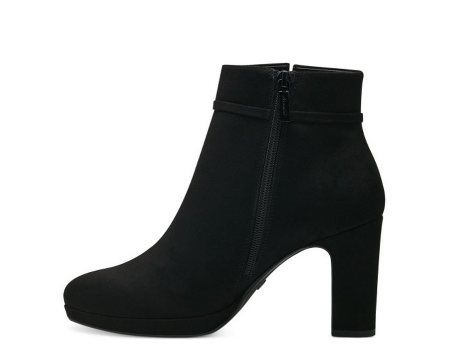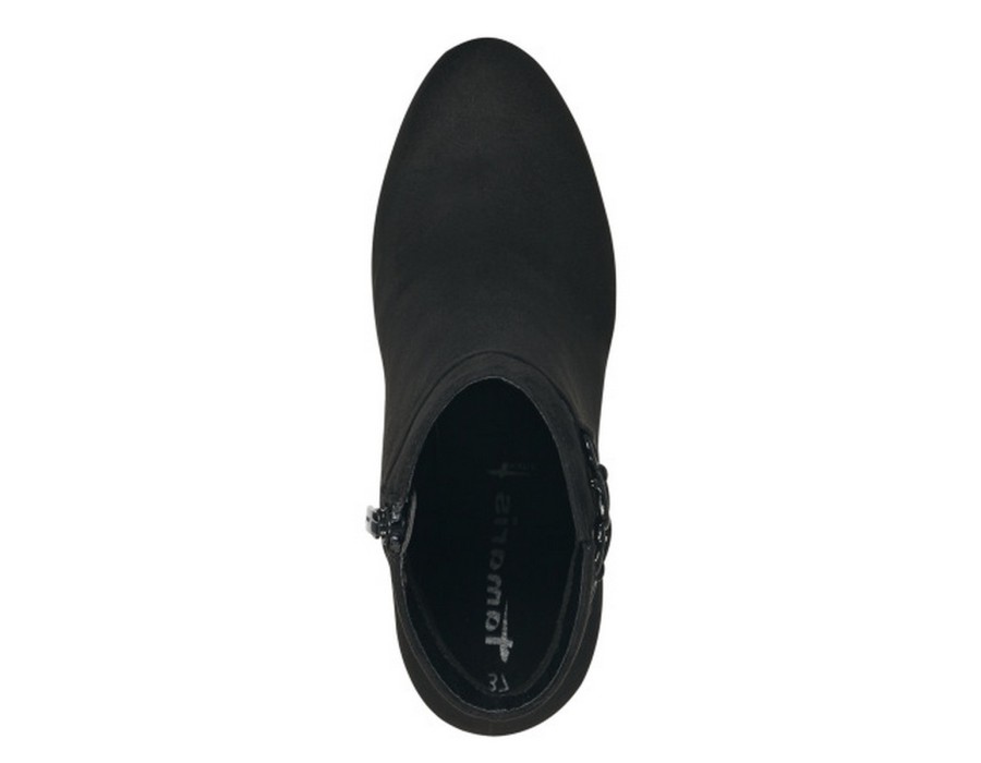 Γυναικείο μποτάκι σε μαύρο χρώμα από τον οίκο Tamaris. Κατασκευασμένο από ύφασμα suede. Διαθέτει τεχνολογία Touch-it που το καθιστά αντιολισθητικό με μαλακό πάτο. Το ύψος του τακουνιού είναι 9 εκ.