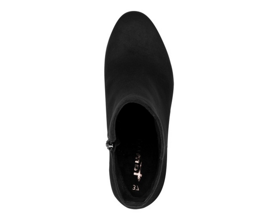 Γυναικείο μποτάκι σε μαύρο χρώμα από τον οίκο Tamaris. Κατασκευασμένο από ύφασμα suede. Διαθέτει τεχνολογία Touch-it που το καθιστά αντιολισθητικό με μαλακό πάτο. Το ύψος του τακουνιού είναι 8 εκ.