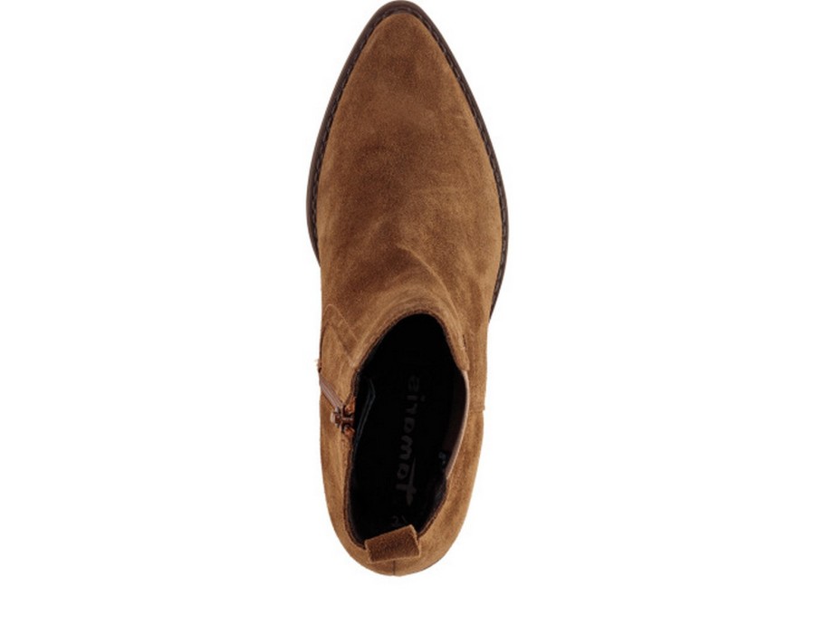 Γυναικείο μποτάκι σε ταμπά χρώμα από τον οίκο Tamaris. Κατασκευασμένο από δέρμα suede. Διαθέτει τεχνολογία Touch-it που το καθιστά αντιολισθητικό με μαλακό πάτο. Το ύψος του τακουνιού είναι 6 εκ.