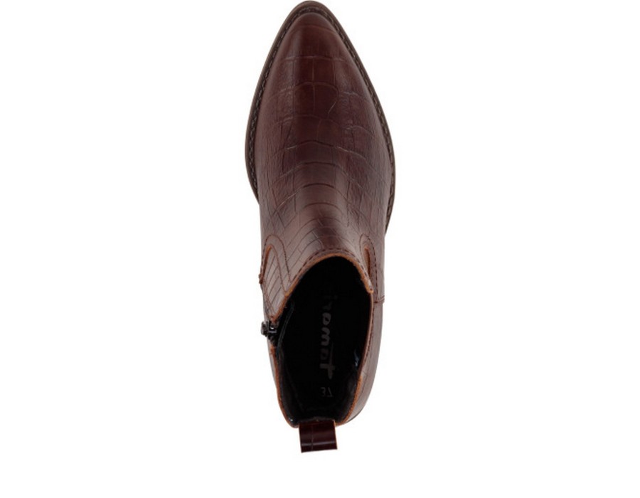 Γυναικείο μποτάκι σε καφέ χρώμα από τον οίκο Tamaris. Κατασκευασμένο από δέρμα. Διαθέτει τεχνολογία Touch-it που το καθιστά αντιολισθητικό με μαλακό πάτο. Το ύψος του τακουνιού είναι 6 εκ.