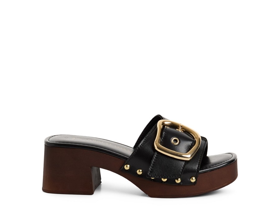 Γυναικεία πλατφόρμα σε μαύρο χρώμα, είναι κατασκευασμένη από δέρμα που την καθιστά πολύ άνετη και πολύ μαλακή. Το ύψος του τακουνιού είναι 5 εκ