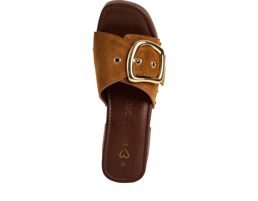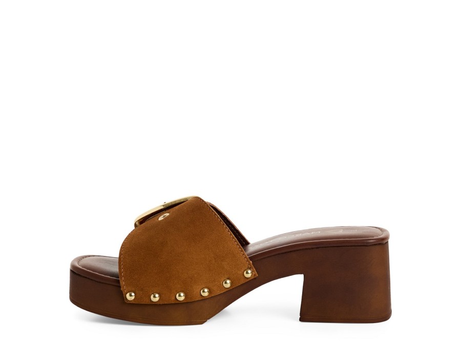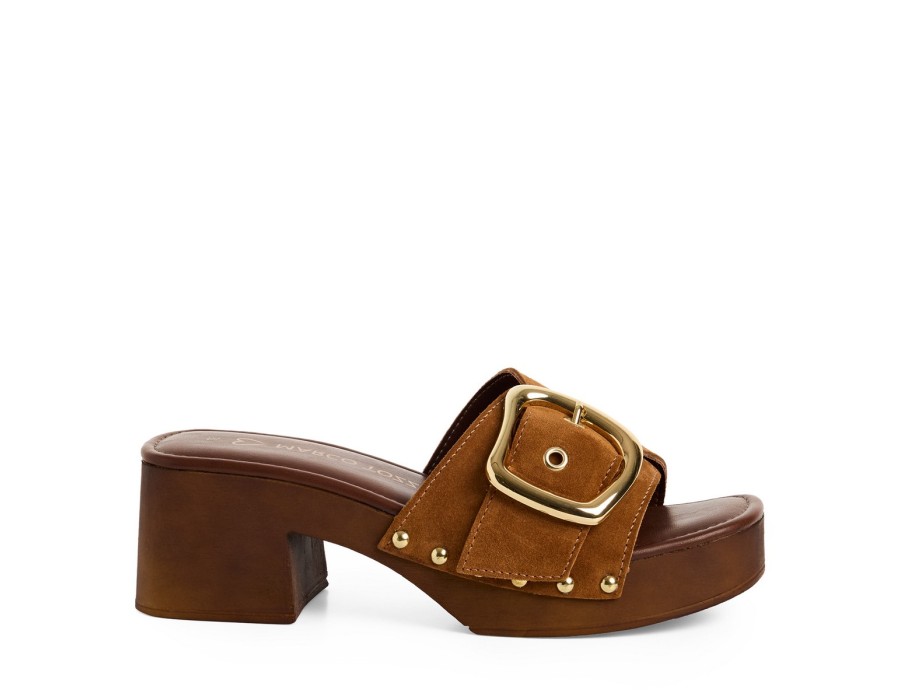Γυναικεία πλατφόρμα σε ταμπά χρώμα, είναι κατασκευασμένη από δέρμα που την καθιστά πολύ άνετη και πολύ μαλακή. Το ύψος του τακουνιού είναι 5 εκ