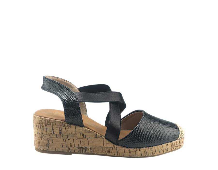 Γυναικεία πλατφόρμα σε μαύρο χρώμα, διαθέτει τακούνι ύψους 5,5 cm καθώς και φιαπα στο μπροστά μέρος που την κάνει πιο άνετη και ευκολοφόρετη όλη την μέρα. Είναι κατασκευασμένη από συνθετικό δέρμα και ύφασμα.