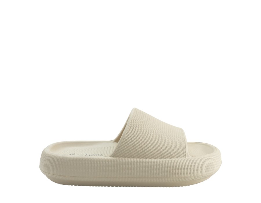 Γυναικεία παντόφλα EcoTwins. Έχουν σχήμα που υπόσχεται απόλυτη εφαρμογή και σταθερό περπάτημα. Χάρη στην νέα τεχνολογία που εφαρμόζει στη σόλα της, εγγυάται άριστη απορρόφηση των κραδασμών, ενώ ταυτόχρονα εξομαλύνει και ανωμαλίες που υπάρχουν στην επιφάνεια του εδάφους. Το EVA υλικό κατασκευής τους είναι ειδικά επεξεργασμένο συνθετικό φιλικό προς το περιβάλλον που μπορεί να μπει στο νερό. Είναι ιδανικό για θάλασσα και πισίνα.
