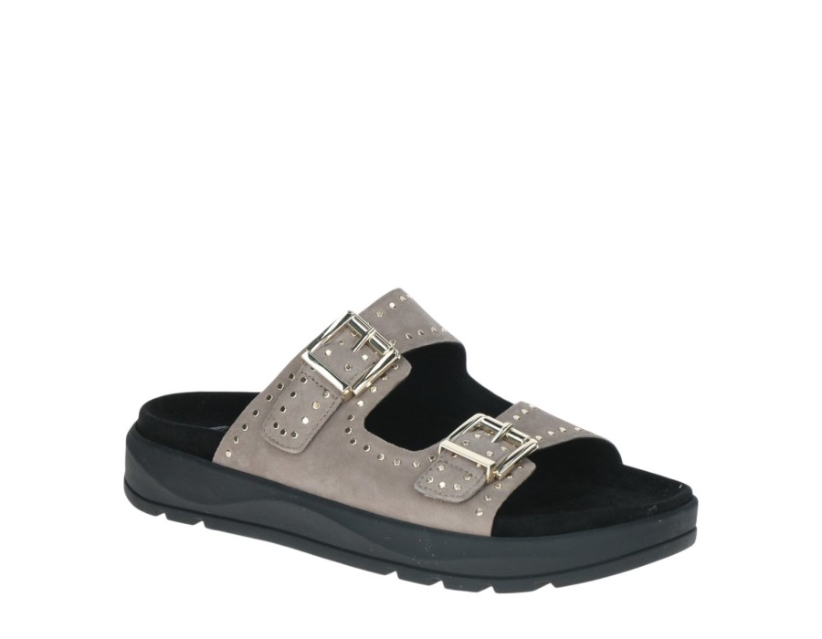 Γυναικείο σανδάλι στο χρώμα του πούρου, είναι κατασκευασμένο από δέρμα suede που το καθιστά πολύ άνετο και μαλακό. Το ύψος του τακουνιού είναι 3 εκ.