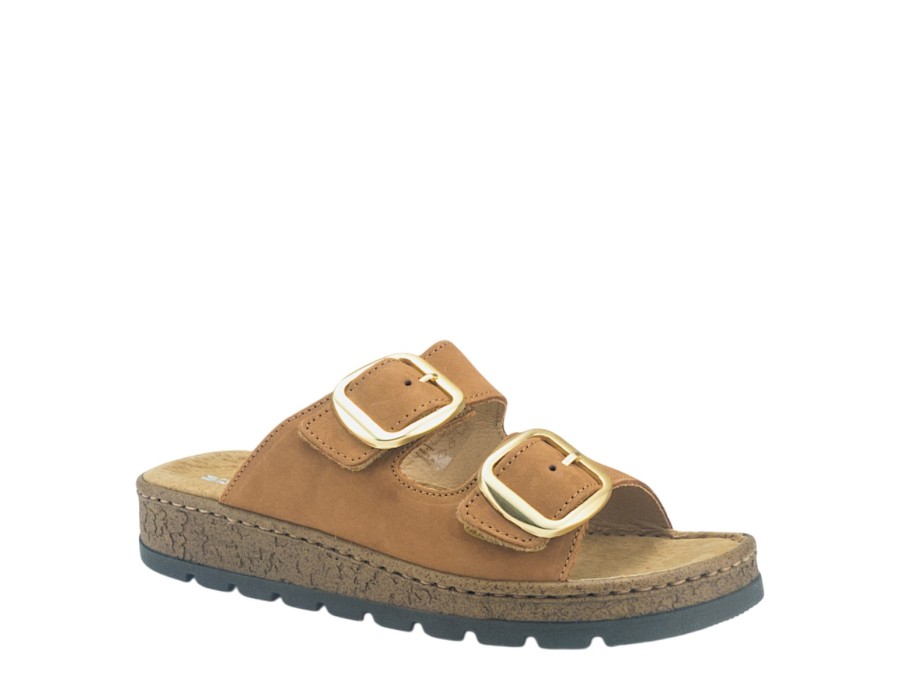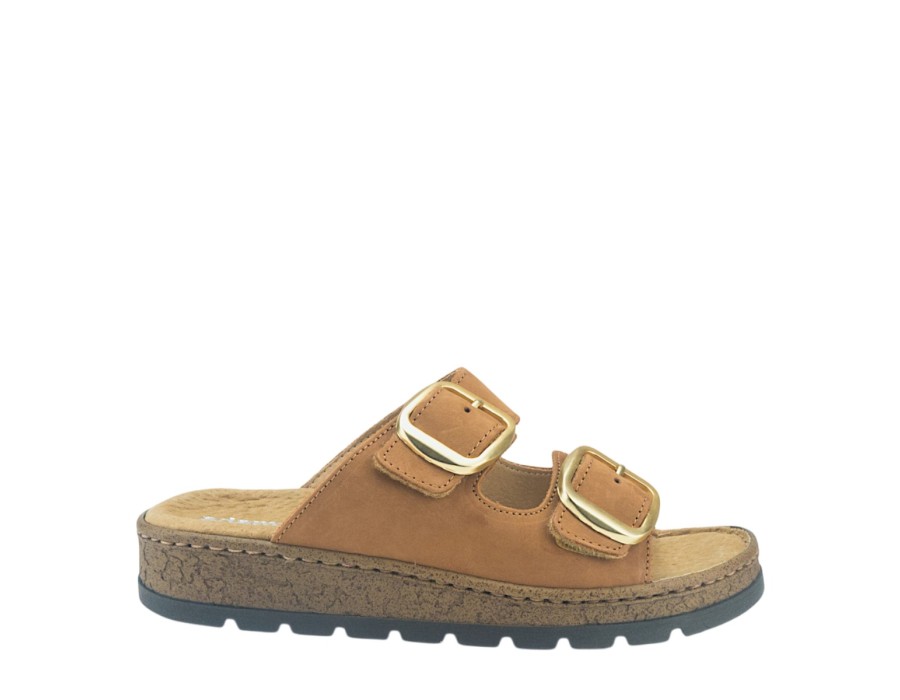 Γυναικεία σανδάλια κατασκευασμένα από δέρμα σε ταμπά χρώμα, από την εταιρεία Adam's. Διαθέτουν δυο ρυθμιζόμενα λουριά και προσαρμόζονται απόλυτα στο πόδι. Ιδανικά να σας συνοδεύσουν στην καθημερινότητα και να συνδυαστούν με όλες σας τις εμφανίσεις.