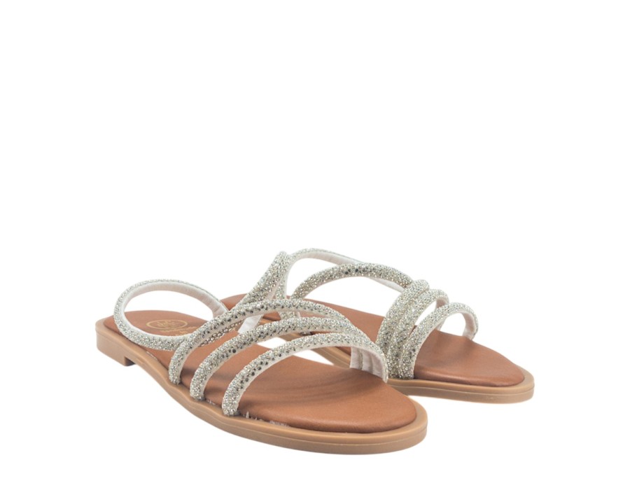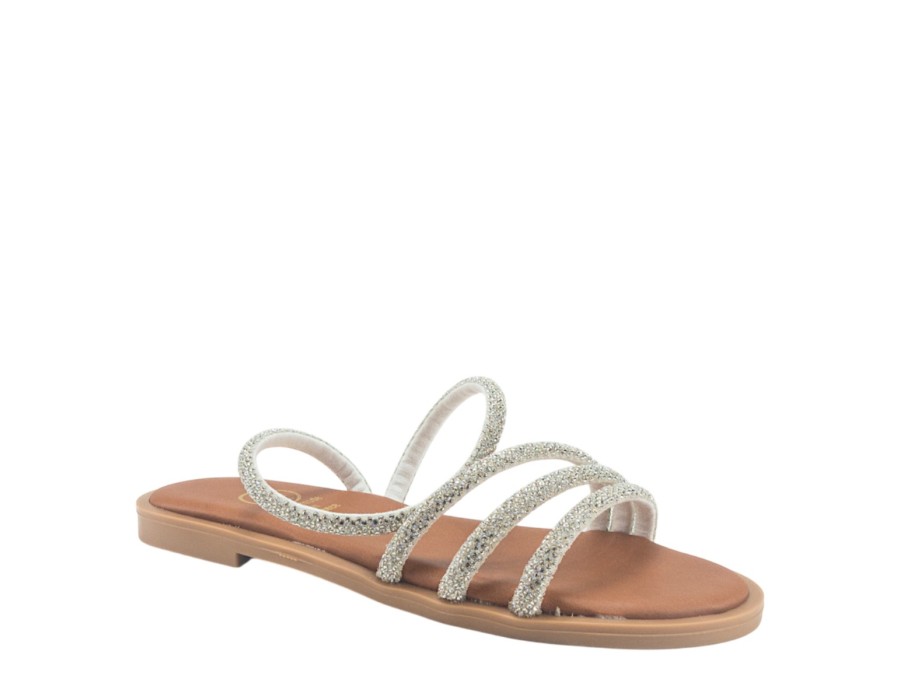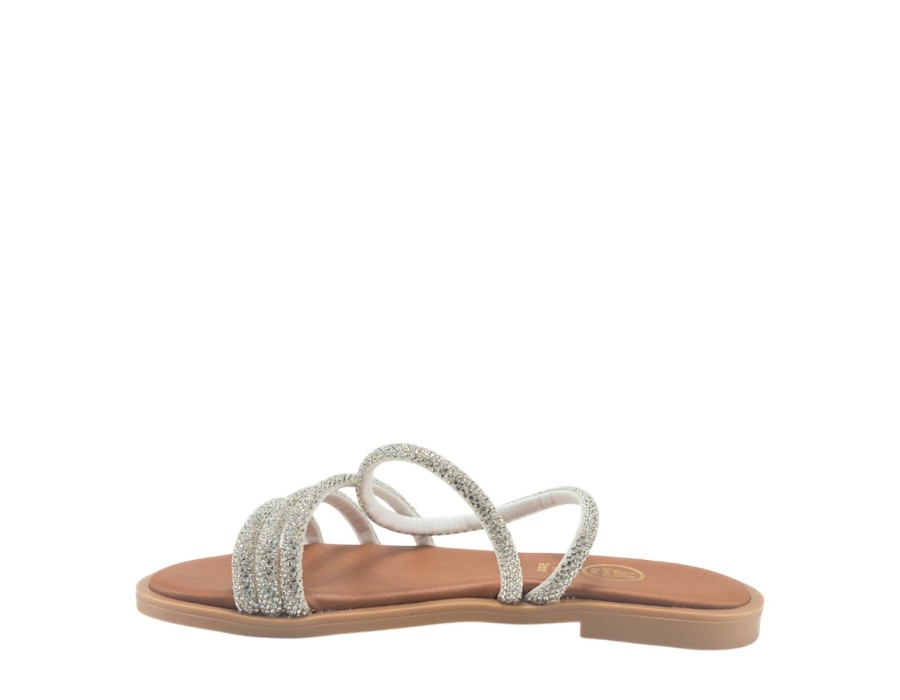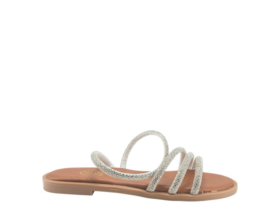 Γυναικείo πέδιλο της εταιρείας NIKOL από συνθετικό δέρμα με τακούνι ύψους 1,5 εκατοστών σε ασημί χρώμα.